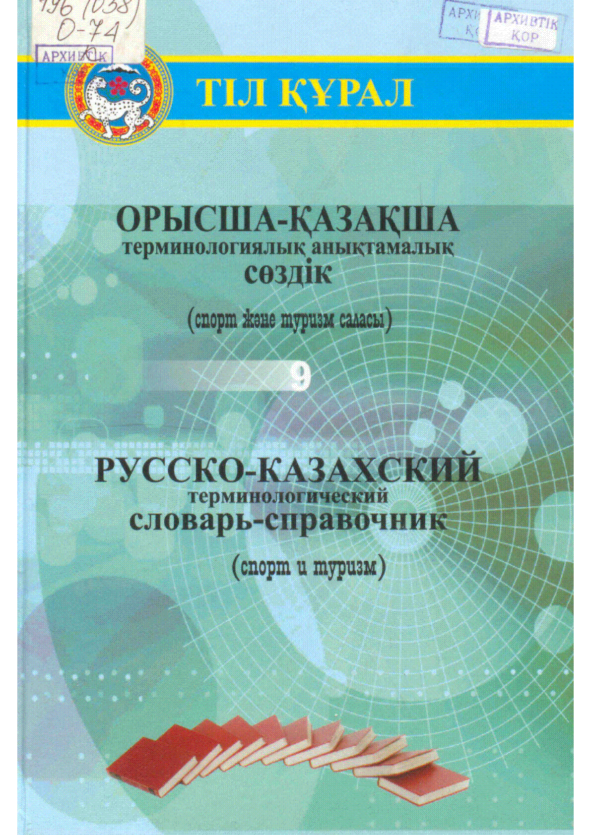 = Русско-казахский терминологический словарь-справочник (спорт и туризм) , Орысша-қазақша терминологиялық анықтамалық сөздік (спорт және туризм саласы) [Мәтін] / ... – Астана : Мемлекеттік тілді дамыту институты, 2010. - 316 бет 22 см – (Тіл құрал. . . – 1 000 дана – 978-601-7206-20-8 : 550 теңге