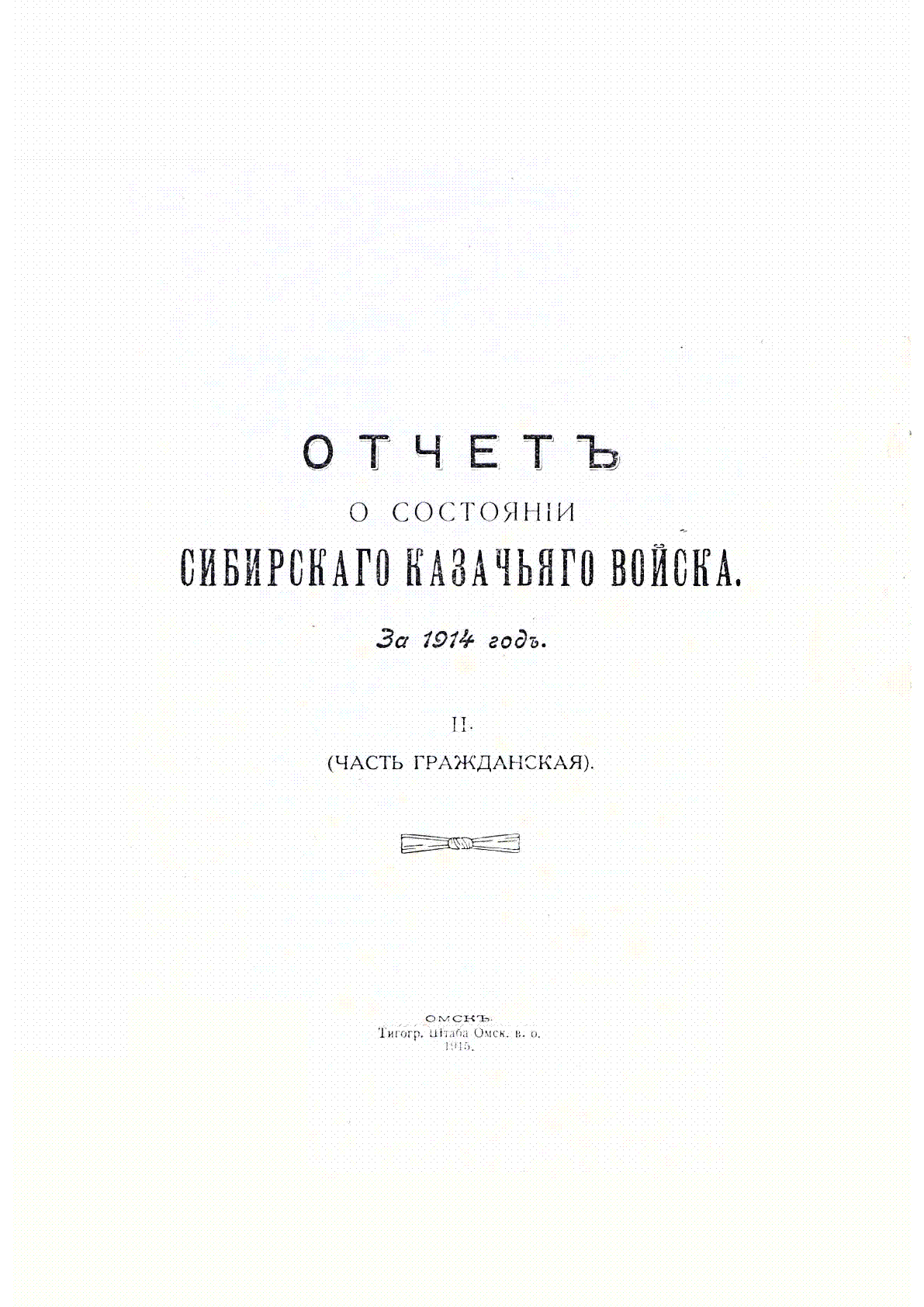 Отчет о состоянии Сибирского казачьего войска за 1914 год [Текст] - Омск : Тип. Омского военного округа , 1915. Ч. 2 . (Часть гражданская)– 127 с., [9] л. ил. .