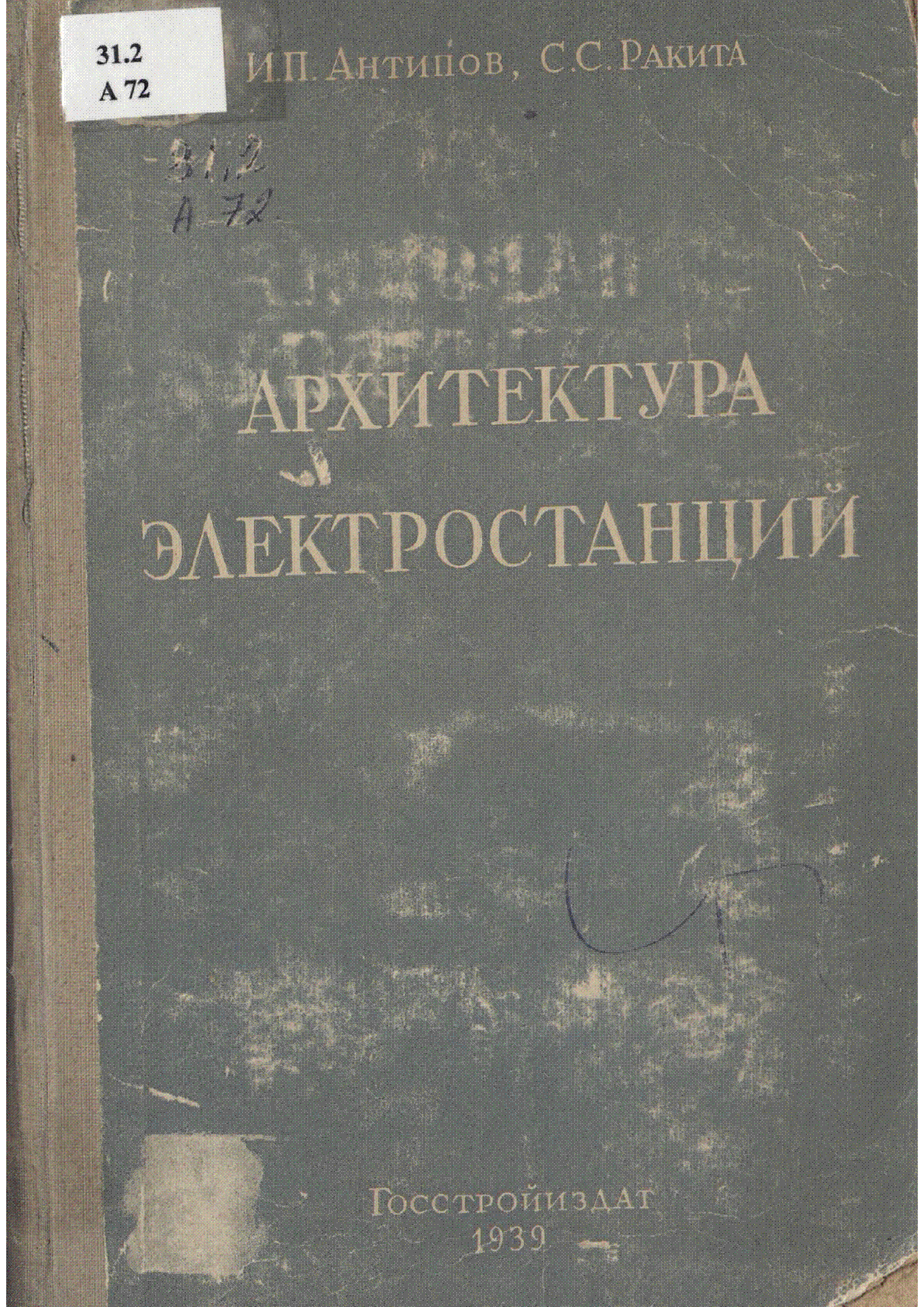 Архитектура электростанций [Текст] / И. П. Антипов ; отв. С. С. Ракита... – Москва ; Ленинград : Госстройиздат, 1939. - 220, [2] б. . – Библиогр.: 222 с. . – 3000 экз. (в пер.)