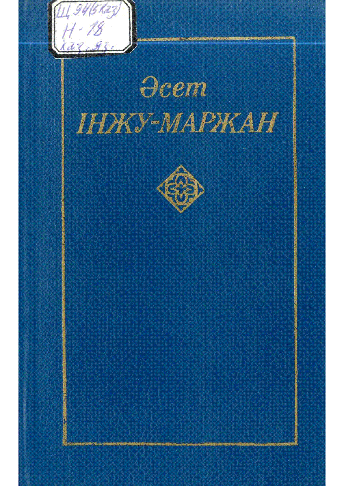Інжу-маржан [Мәтін] : Әндер / Найманбайұлы Әсет ... – Алматы : Өнер, 1992. - 144бет 17х11см. . . – 10000 дана : 10 теңге