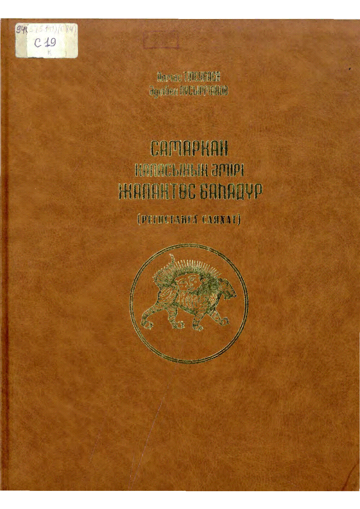 Самарқан қаласының әмірі - Жалаңтөс Баһадүр (Регистанға саяхат) [Мәтін] / ... – Алматы : [б. ж.], 2009. - 144 б., суретті; - Мәтін қазақ, орыс тілдерінде . – Библиогр.: 142 б. . – 1000 дана – ISBN 978-601-06-0049-2 (мұқ.) : 0 тг.