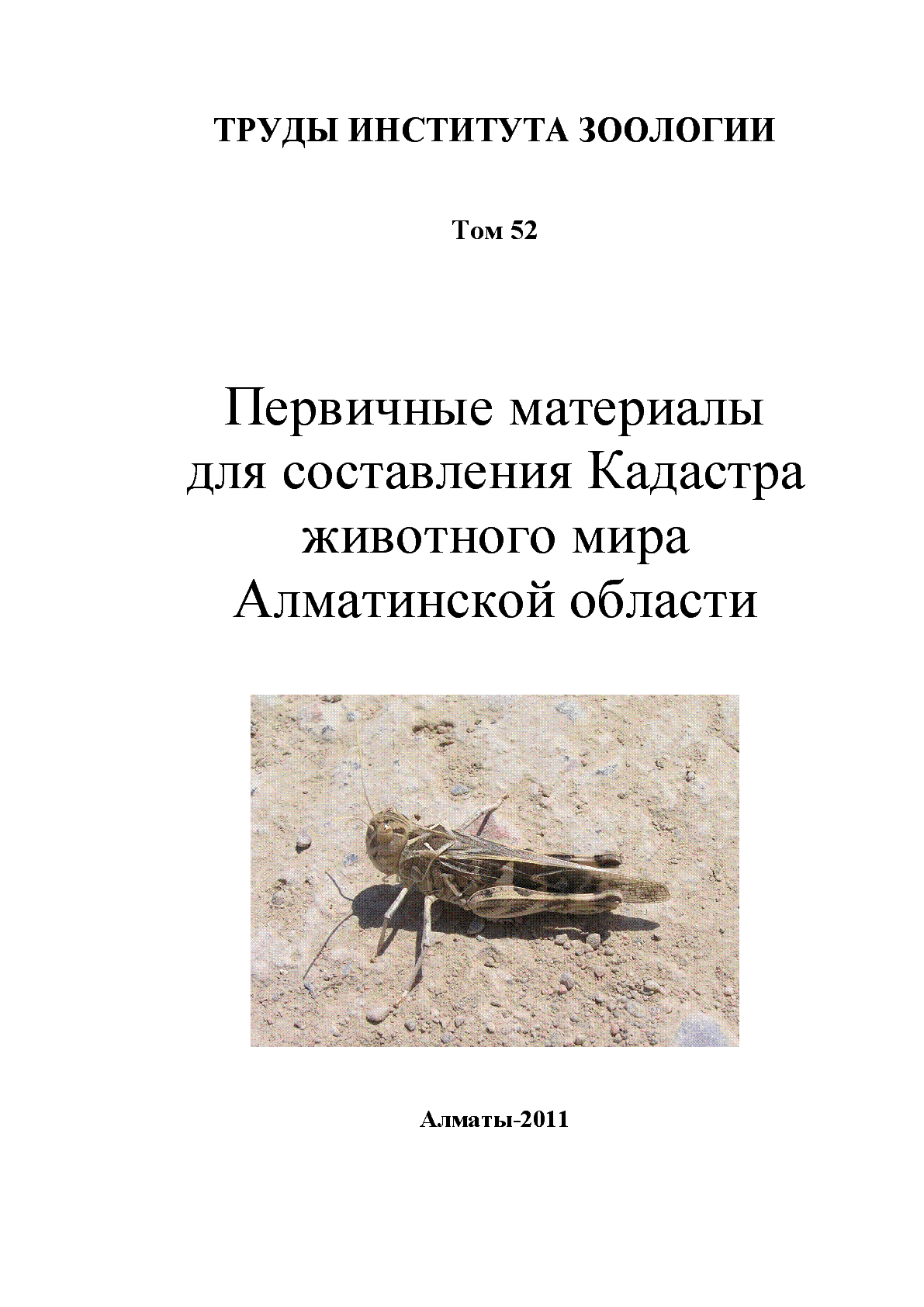 Первичные материалы для составления Кадастра животного мира Алматинской области = Алматы облысының жануарлар әлемінің Кадастріне мәліметтер = Primary materials for the drawing up of the Cadastre of fauna of Almaty area [Текст] / М. Х. Байжанов Ж. М. Жатканбаева А. М. Мелдебеков А. Бекенов Н. С. Кан ; М-во образования и науки РК ; Ин-т зоологии МОНРК ; [гл. ред. А. М. Мелдебеков ; редкол.: В. Л. Казенас [и др.]]... – Алматы : [б. и.], 2011. - 595 с.– (Труды института зоологии. ; Т. 52- 20-летию Независимости Республики Казахстан посвящается . . – 100 экз. – ISBN 978-601-278-542-5 : 10 тг.