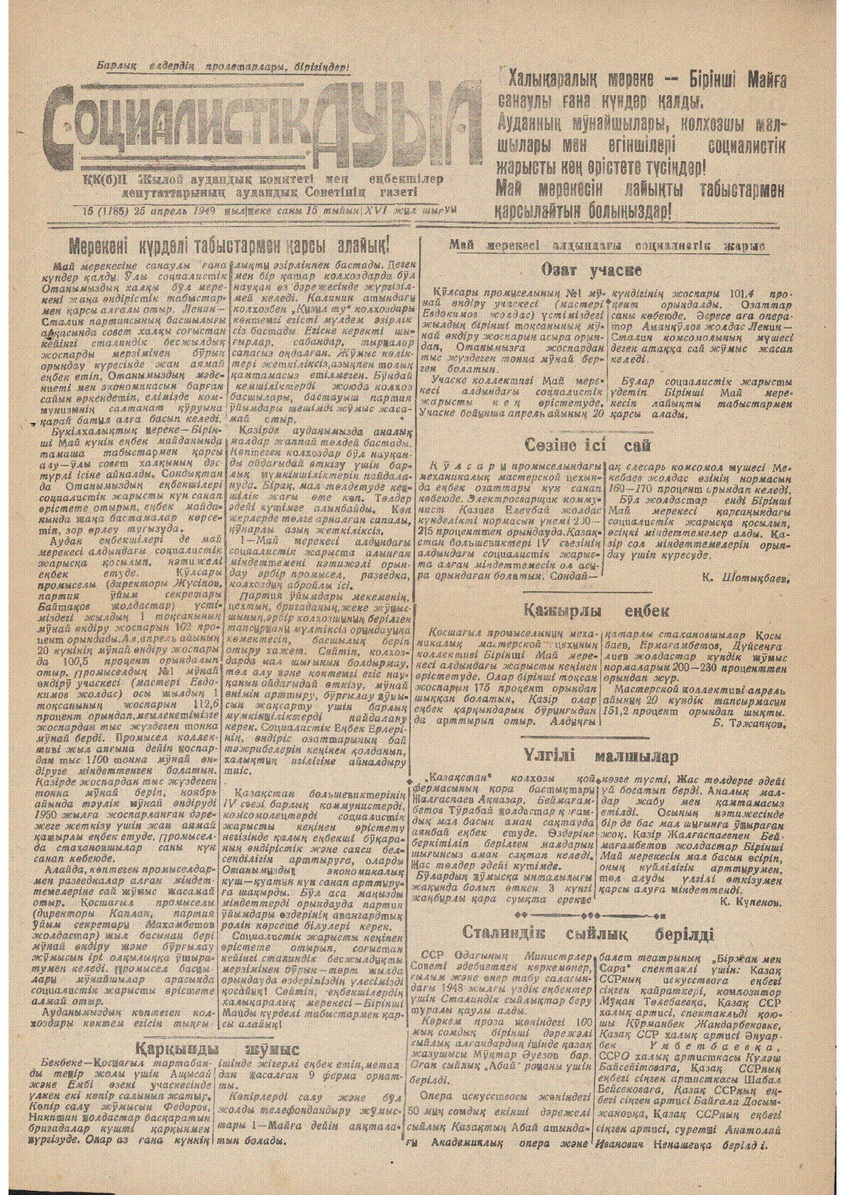 Социалистік ауыл [Мәтін] / Жауапты редактор: С. Ерғалиев. .– 1372 дана. 1949. - 25 апрель. - №15 (1185). - 1372 дана