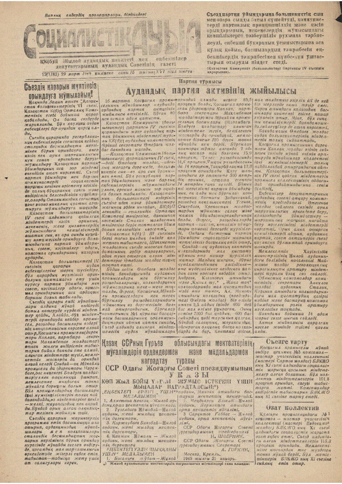 Социалистік ауыл [Мәтін] / Жауапты редактор: С. Ерғалиев. .– 1472 дана. 1949. - 29 март. - №12 (1182). - 1472 дана