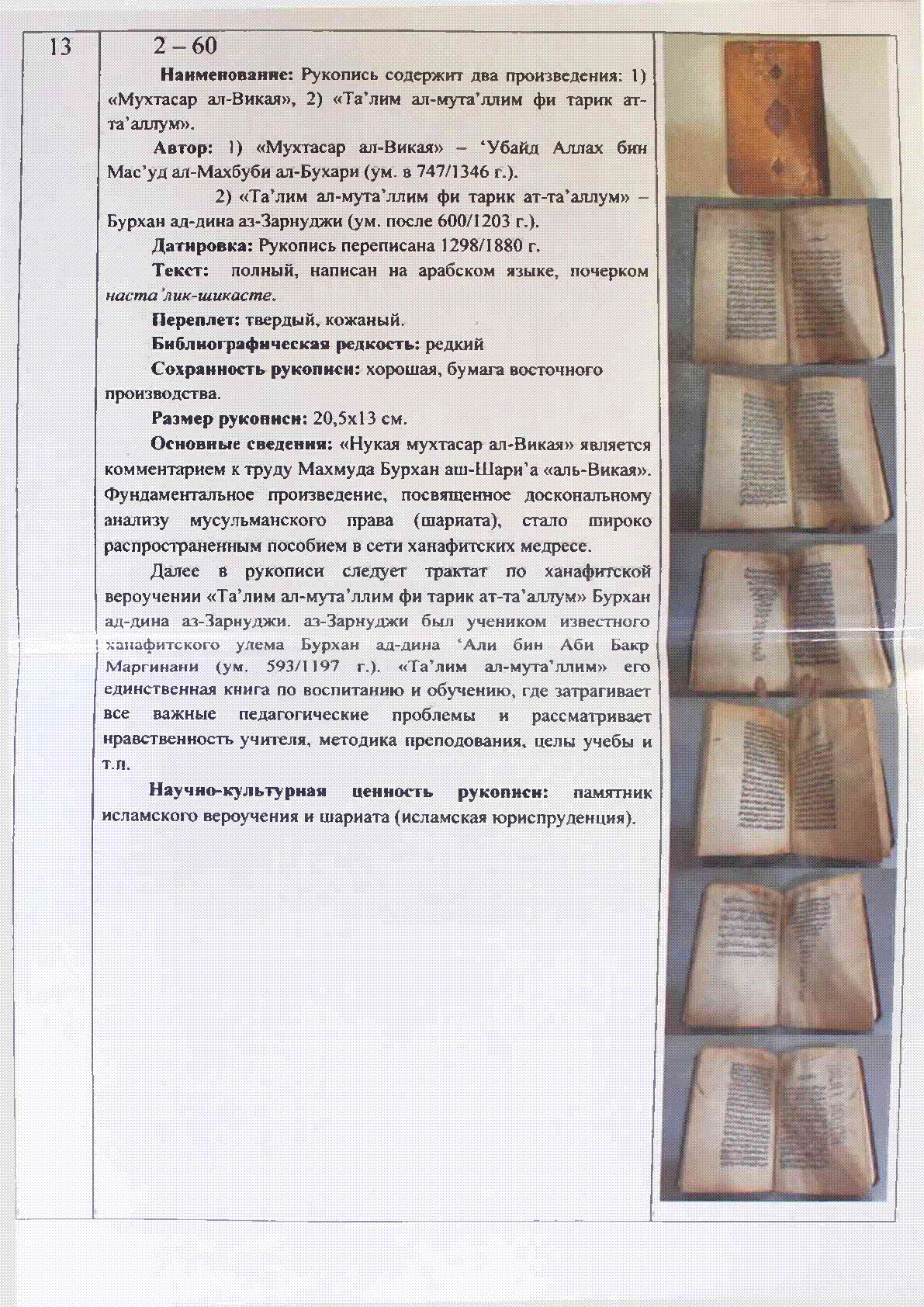 Рукопись "Мухтасар ал-Викая". "Та’лим ал-мута’ллим фи тарик ат-та’аплум" [Текст] : рукопись / ‘Убайд Аллах бин Мас’уд ал-Махбуби ал-Бухари Бурхан ад-дина аз-Зарнуджи . – 2-изд. .. – [Б. и. м.] : [б. и.], [18_ _?]. - [186] c. - Текст: полный, написан на арабском языке, почерком наста ’лик-шикасте . . – [б. т.]