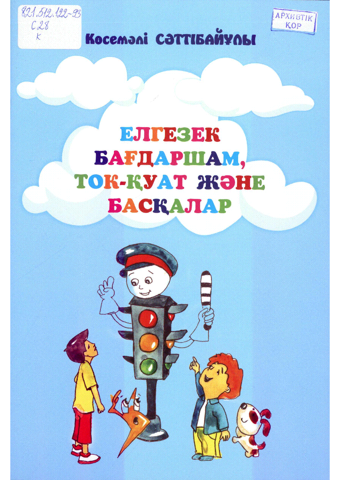 Елгезек Бағдаршам, Ток-Қуат және басқалар [Мәтін] : ертегі-хикаят / К. Сәттібайұлы ... – Алматы : Қазығұрт, 2022. - 24 б., суретті; - Қазақстан Республикасы Мәдениет және спорт министрлігі "Мәдениет және өнер саласындағы бәсекелестікті жоғарылату, қазақстандық мәдени мұраны сақтау, зерделеу мен насихаттау және архив ісінің іске асырылу тиімділігін арттыру" бағдарламасы "Әдебиеттің әлеуметтік маңызды түрлерін сатып алу, басып шығару және тарату" кіші бағдарламасы бойынша жарық көрді . . – 3000 дана – ISBN 978-9965-22-652-6 : 142, 50 тг.
