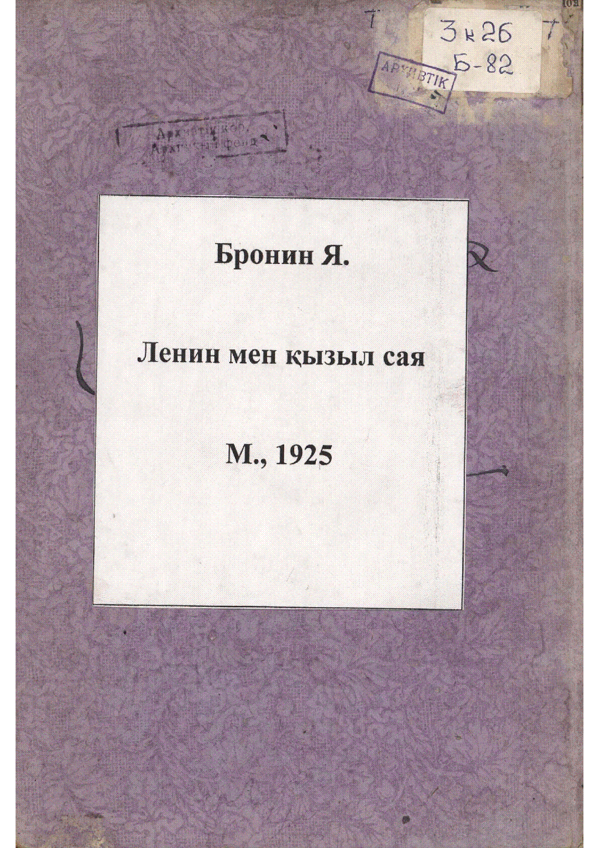 Ленин мен қызыл сая = لەنىن مەن قىزىل سايا [Мәтін] : ауд. Қ. Өтемісұлы / Бронин Я. ... – Москва : Кеңестер одағындағы елдердің кіндік баспасы, 1925. - 48 б. - Мәтін араб графикасымен жазылған. . .