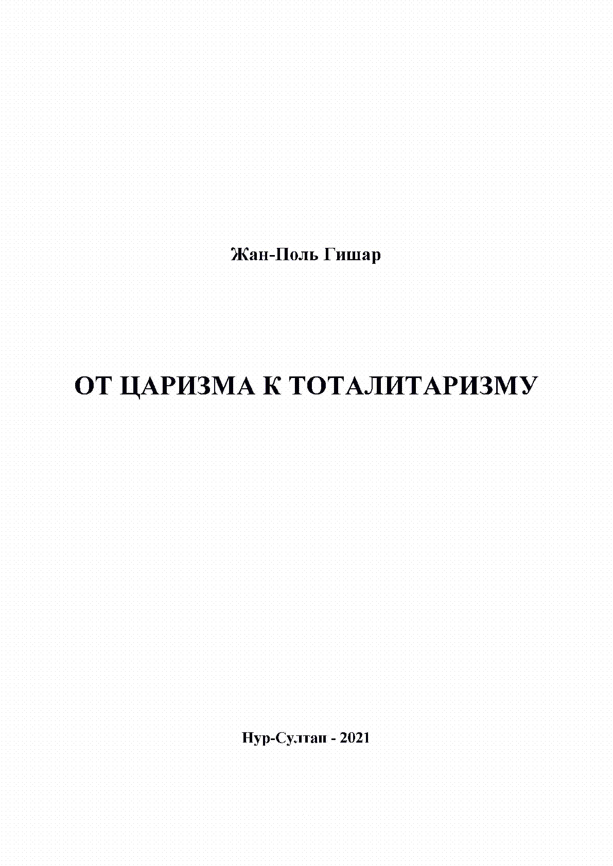 От царизма к тоталитаризму [Текст] / Ж.-П. Гишар ; Пер. с франц.: Р. Жанбулатова, А. Малинбаева, Г. Томский... – Нұр-Сұлтан : [б. и.], 2021. - 177 с. . – Библиогр. в сносках . – 500 экз. – ISBN 978-601-326-566-7