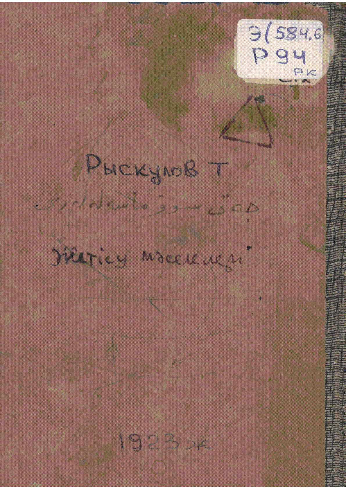 Жетісу мәселелері = جيتى – سوو ماسه له له رى [Мәтін] / Т. Рысқұлов ... : Түркістан баспасөздер басқармасы, 1923. - 33 б. 16,5 х 12 см. - Мәтін араб графикасымен жазылған . . – 1000 дана