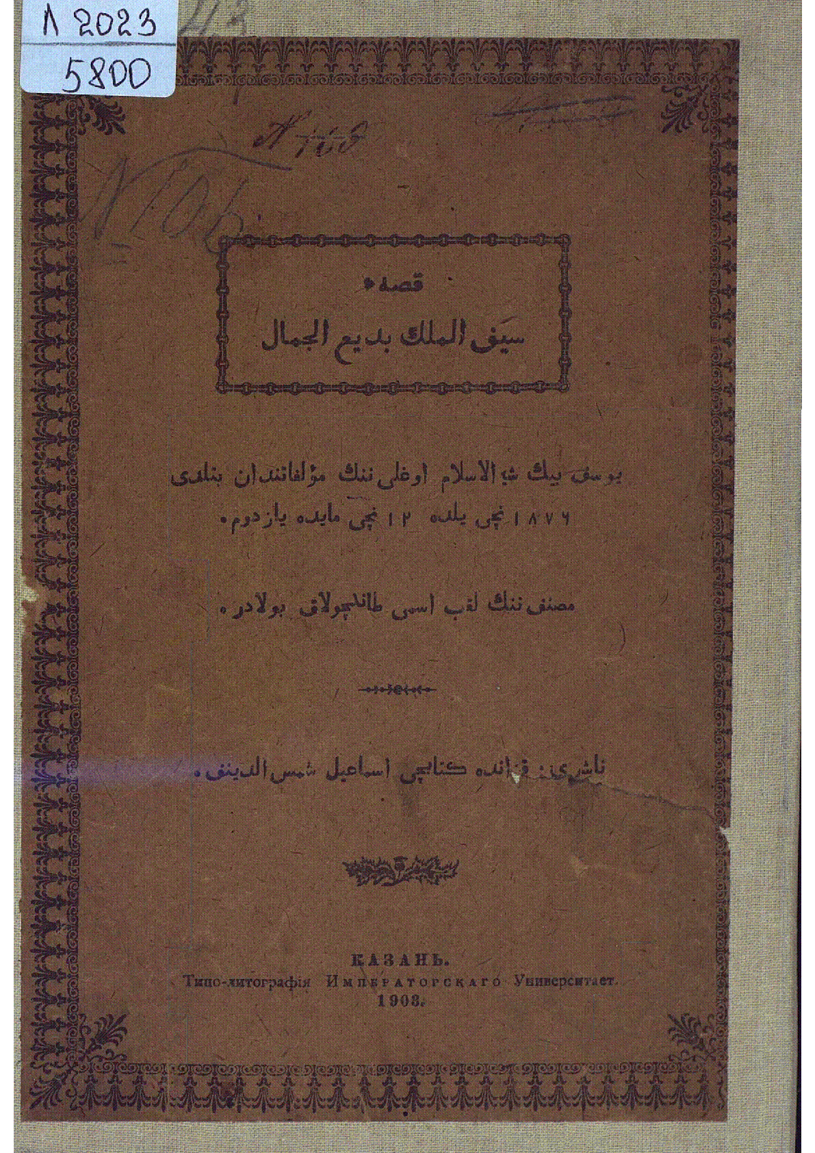 سيف الملك بديع الجمال = Қисса-и Сейпі-л-Мәлік Бәдиғұл Жамал [Text] / Ю. Ш. Ислам ... – Қазан : Император университеті баспасы, 1903. - 49 б. . . – [т. ж.] (мұқ.) : 0 тг,