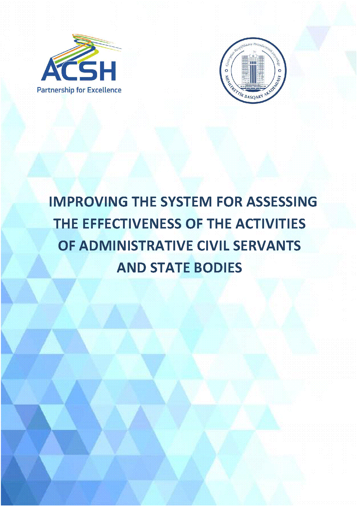 Improving the system for assessing the effectiveness of the activities of administrative civil servants and state bodies [Text] / ; [was done under the supervision of A. B. Zeinelgabdin , G.A. Junusbekova ; performers: [a.o] ; Acad. of Public Administration under the President of the RK]... – Nur-Sultan : [w. p.], 2020. - 223 p. . – Bibliogr.: p. 192-199 . – [w. c.]