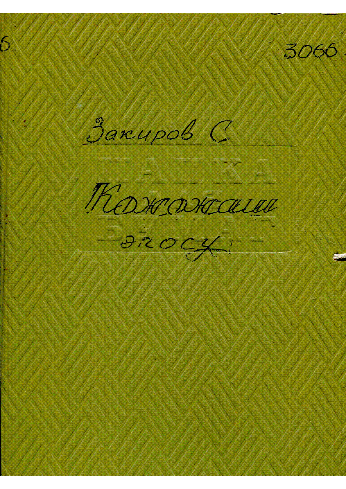 Кожожаш [Manuscript] / ; түзгөн С. Закиров... – Фрунзе : [б. ж.], [1959]. - [101] б. - Мәтін қырғыз тілінде. - Жазу машинкамен басылған қолжазба . . – [т. ж.]