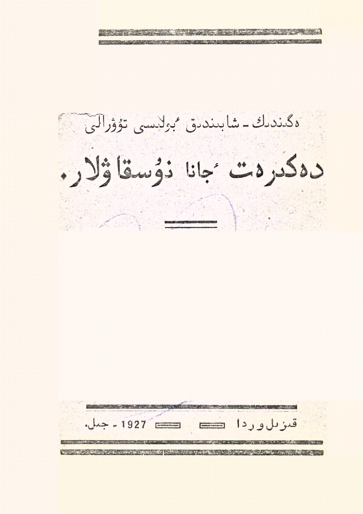 Егіндік-шабындық бөлісі туралы декрет және нұсқаулар = ه گىندىك-شابىندىق ءبولىسى تۇۋرالى دەكره ت جانا نۇسقاۋلار [Мәтін] / ; [Казнаркомзем [Народный комиссариат земледелия Казахской ССР ]]... – Қызылорда : [б. ж.], 1927. - 46 бет - Мәтіні араб графикасымен қазақ тілінде . . – 4000 дана