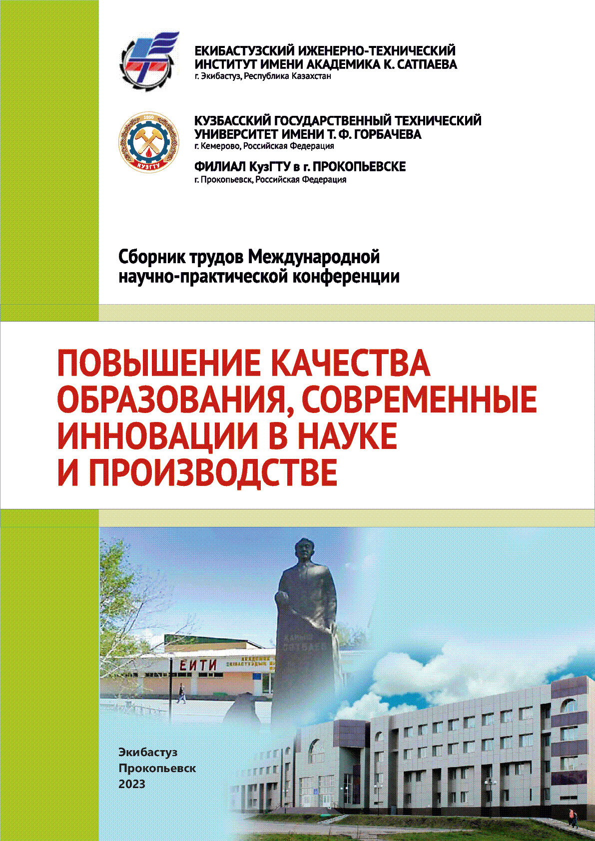 Повышение качества образования, современные инновации в науке и производстве [Текст] : сборник трудов Международной научно-практической конференции / ; Экибастузский инженерно-технический институт имени академика К. Сатпаева ; Кузбасский государственный технический университет имени Т.Ф. Горбачева ; Филиал КузГТУ в г. Прокопьевске ; [редакторы: О. А. Клаус, Е. С. Пономарева]... – Экибастуз : [б. и.], 2023. - 312 с., 1 электрон. oпт. диск (CD-R); - Текст на русском, казахском языке . – Библиография в конце статьи . – 15 экз. – ISBN 978-5-6047919-3-6