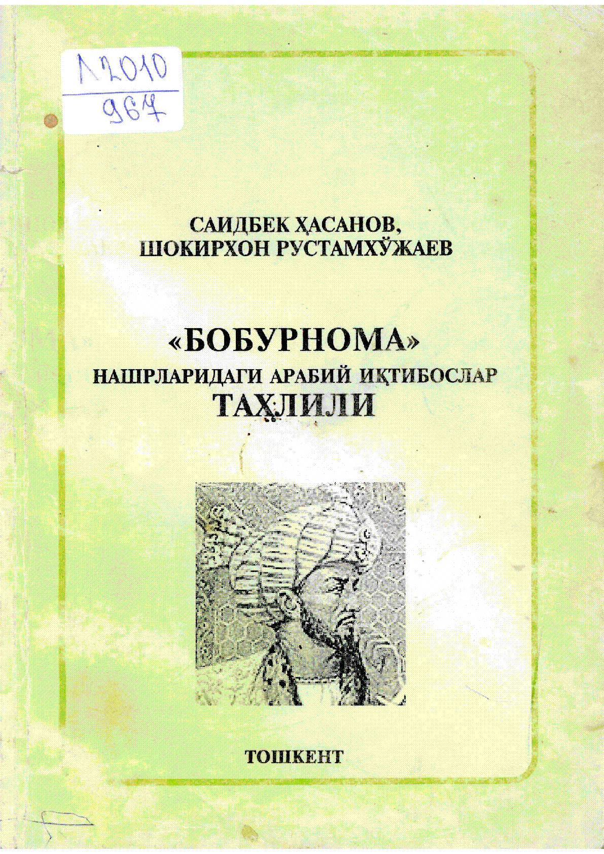 "Бобурнома"нашрларидаги арабий иқтибослар таҳлили [Text] / C. Ҳасанов Ш. Рустамхўжаев ... – Тошкент : Fan va texnologiya, 2010. - 191 s. 20 см - Текст на узб. яз., - Автограф от автора. . . – 100 экз.