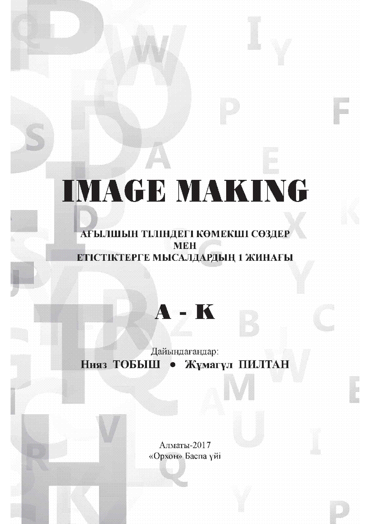 Ағылшын тілін үйрену үшін екі тілді сөздіктер мен грамматиканы жан-жақты түсіндіретін кітаптарға қоса “IMAGE MAKING” (Ағылшын тіліндегі көмекші сөздер мен етістіктерге мысалдар жинағы) сияқты жинақтар қажет екендігі белгілі