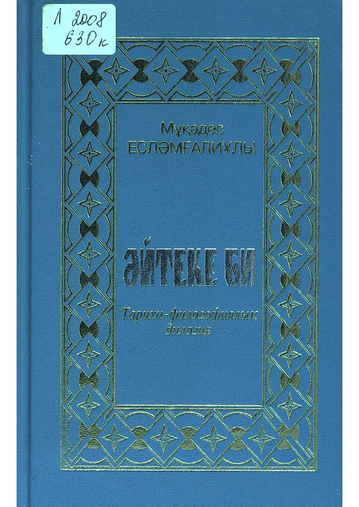 Әйтеке би [Мәтін] : тарихи-философиялық дилогия / М. Есләмғалиұлы ; [редакторы Е. Дүйсеенбайұлы]... – Алматы : Жазушы, 2007. - 557, [2] б. - Қазақстан Республикасы Мәдениет және ақпарат министрлігі, Ақпарат және мұрағат комитеті 017 "Әлеуметтік маңызды әдебиет түрлерін шығару" бағдарламасы . . – 2000 дана – ISBN 978-601-200-037-5 (мұқ.) : 660 тг.