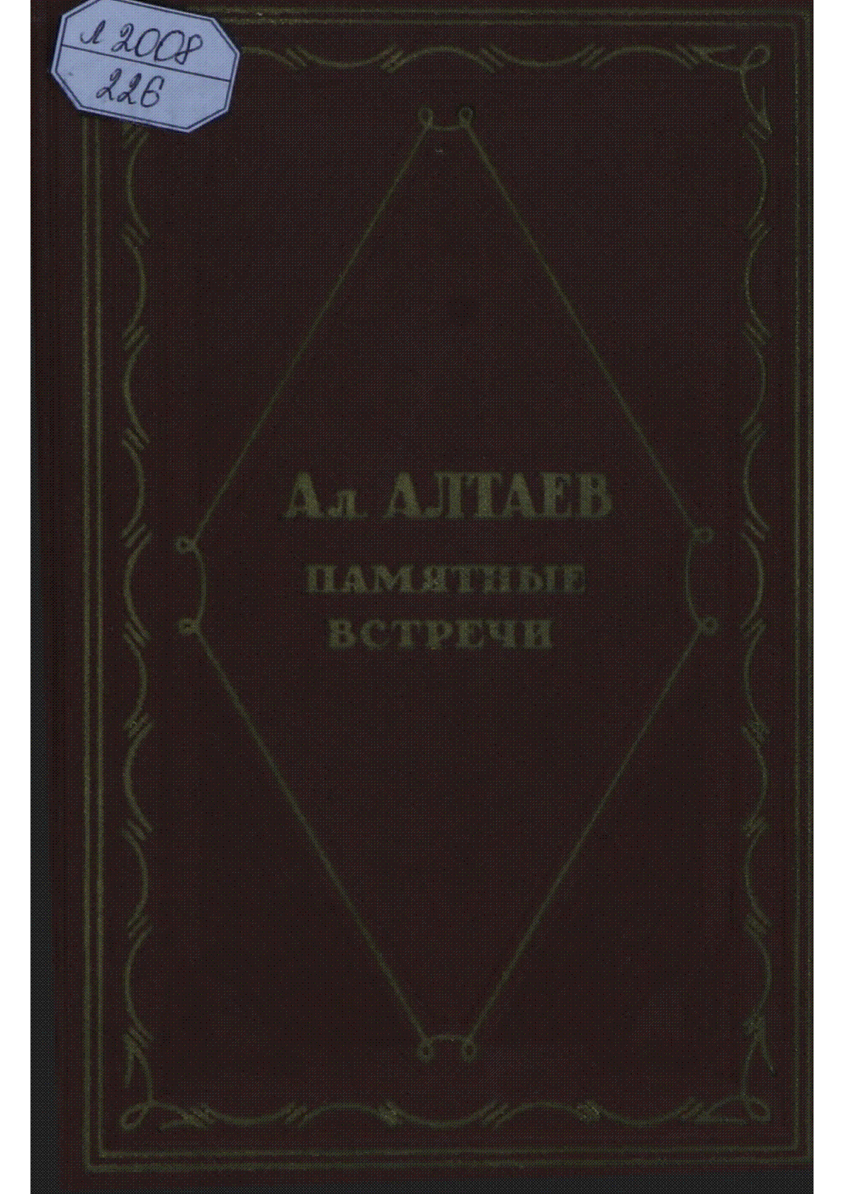 Памятные встречи [Текст] / Алтаев, Ал. ... – Москва : Худож. лит., 1957. - 423 с., ил.; - Авт.: Маргарита Владимировна Алтаева-Ямщикова : псевдоним : Ал. Алтаев . . (в пер.)