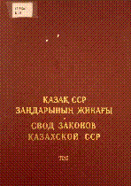 Қазақ ССР заңдарының жинағы [Мәтін] , ; Қазақ ССР Жоғарғы Советінің Президиумы ; Қазақ ССР Министрлер Советі ; [заңдарды басып шығар. жөніндегі комиссия: Д. Досполов [ж. б.]] .- Алматы : [б. ж.] , 1987.– 6 800 дана . – көрсетілмеген (мұқ.) - Мәтіні қазақ және орыс тілдерінде . 13 том . Сот әділдігі, арбитраж және право тәртібін қорғау туралы заңдар : V-бөлім– 838, [2] б. : 400 тг.