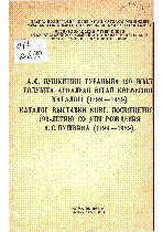 Каталог выставки книг, посвященной 190-летию со дня рождения А. С. Пушкина (1799-1989 гг.) = А. С. Пушкиннің туғанына 190 жыл толуына арналған кітап көрмесінің каталогі (1799-1989) [Текст] / ; сост. А. Бондаренко ; РМК ГКДИПКТ... – Алматы : [б. и.], 1989. - 24 с. . . – 1000 экз. : 20 тг.