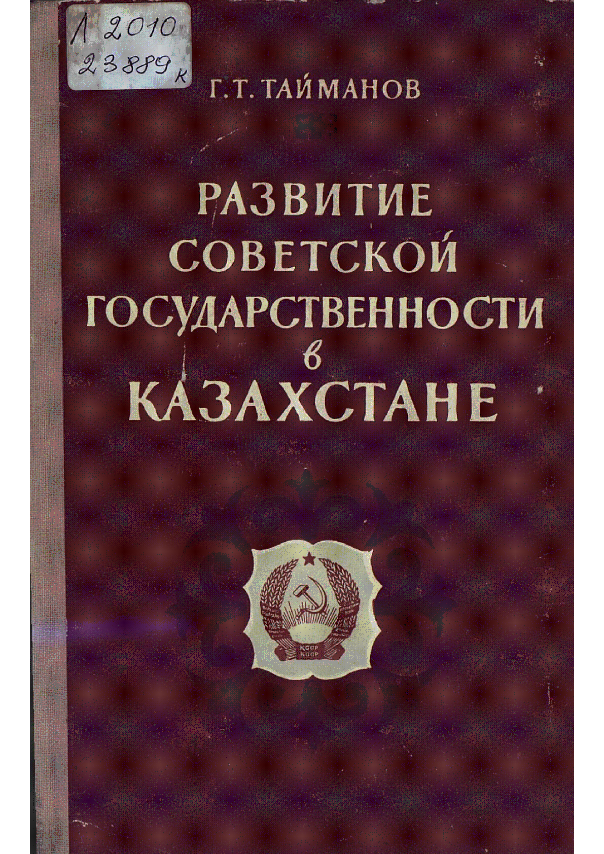 Развитие советской государственности в Казахстане [Текст] : краткий историко-юридический очерк / Г. Т. Тайманов ... – Москва : Госюриздат, 1956. - 129, [2] с. . . – 3000 экз. (в пер.) : 5 тг.