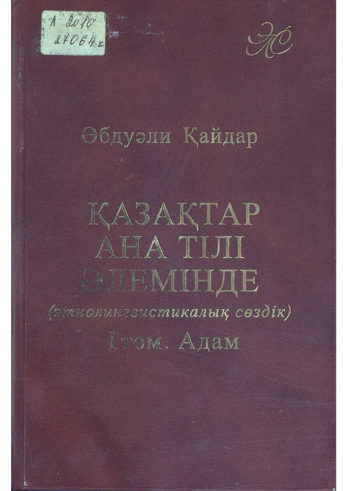 Қазақтар ана тілі әлемінде [Мәтін] : этнолингвистикалық сөздік / Ә. Қайдар ; [ред. Р. Қ. Шаймерденов] ; [А. Байтұрсынұлы атын. Тіл білімі ин-ты] .- Алматы : Дайк-Пресс , 2009.– 1000 дана . – ISBN 978-601-7170-07-3 (Т. 1) , ISBN 978-601-7170-06-6 (мұқ.) - Этнолингвистикалық сөздік "Адам", "Қоғам", "Табиғат" деп аталатын 3 томнан тұрады . 1-том . Адам– 780 б. (мұқ.) : 2268 тг.