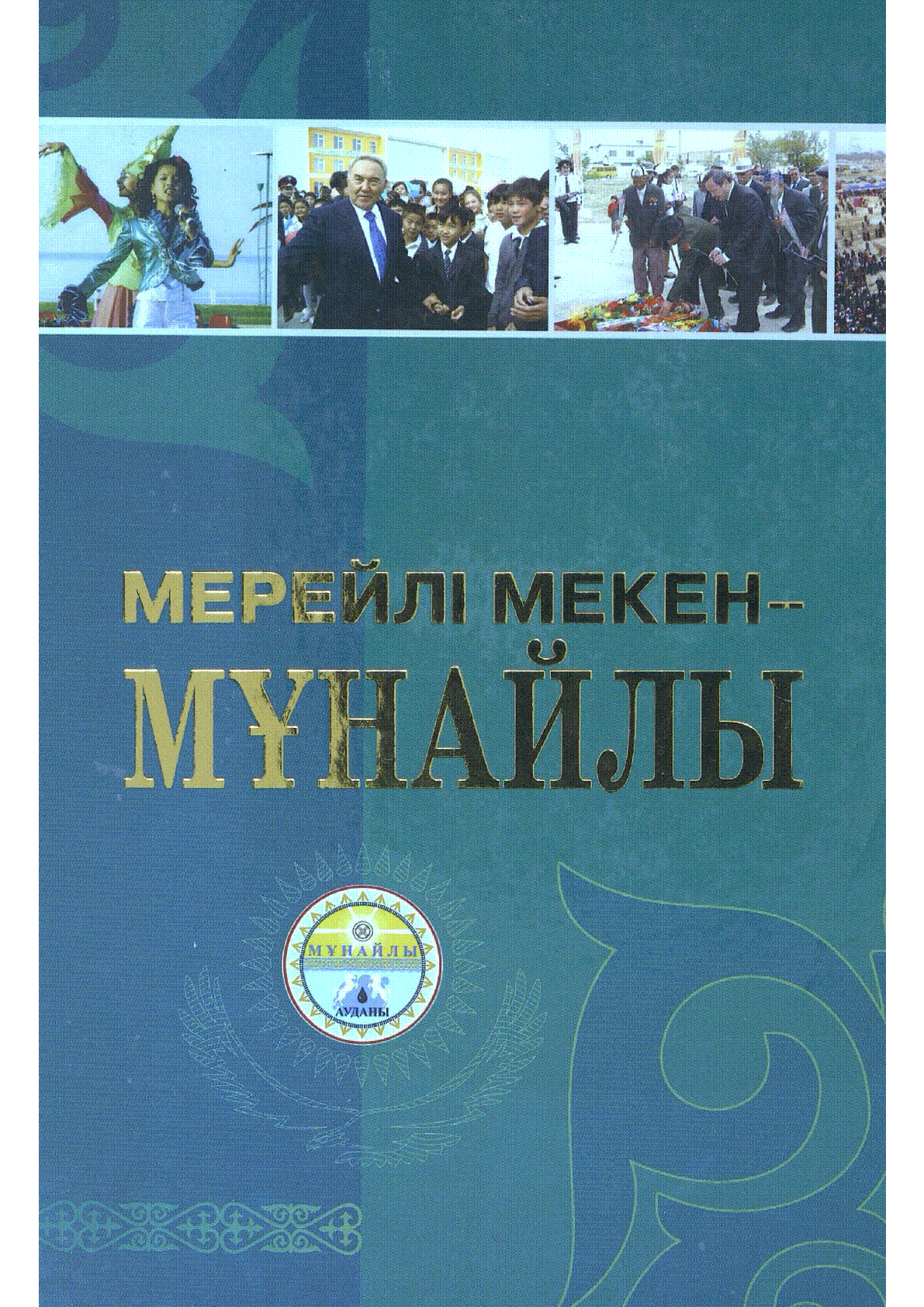 Мерейлі мекен - Мұнайлы [Мәтін] : дерекнама-ақпараттық, энциклопедиялық жинақ / ; [құраст.: Я. Қ. Аталықов, Ү. Жәлеке ; жауапты ред. М. Қ. Жетекбай; ред. алқасы: Қ. О. Оңдабаев, А. Б. Жұмаш, Б. Қ. Әлменов]... – Алматы : Бабамұра-М, 2011. - 248 б., [8] п. сурет; . . – 1000 дана – 978-601-7064-09-9 (мұқ.) : 40 тг.