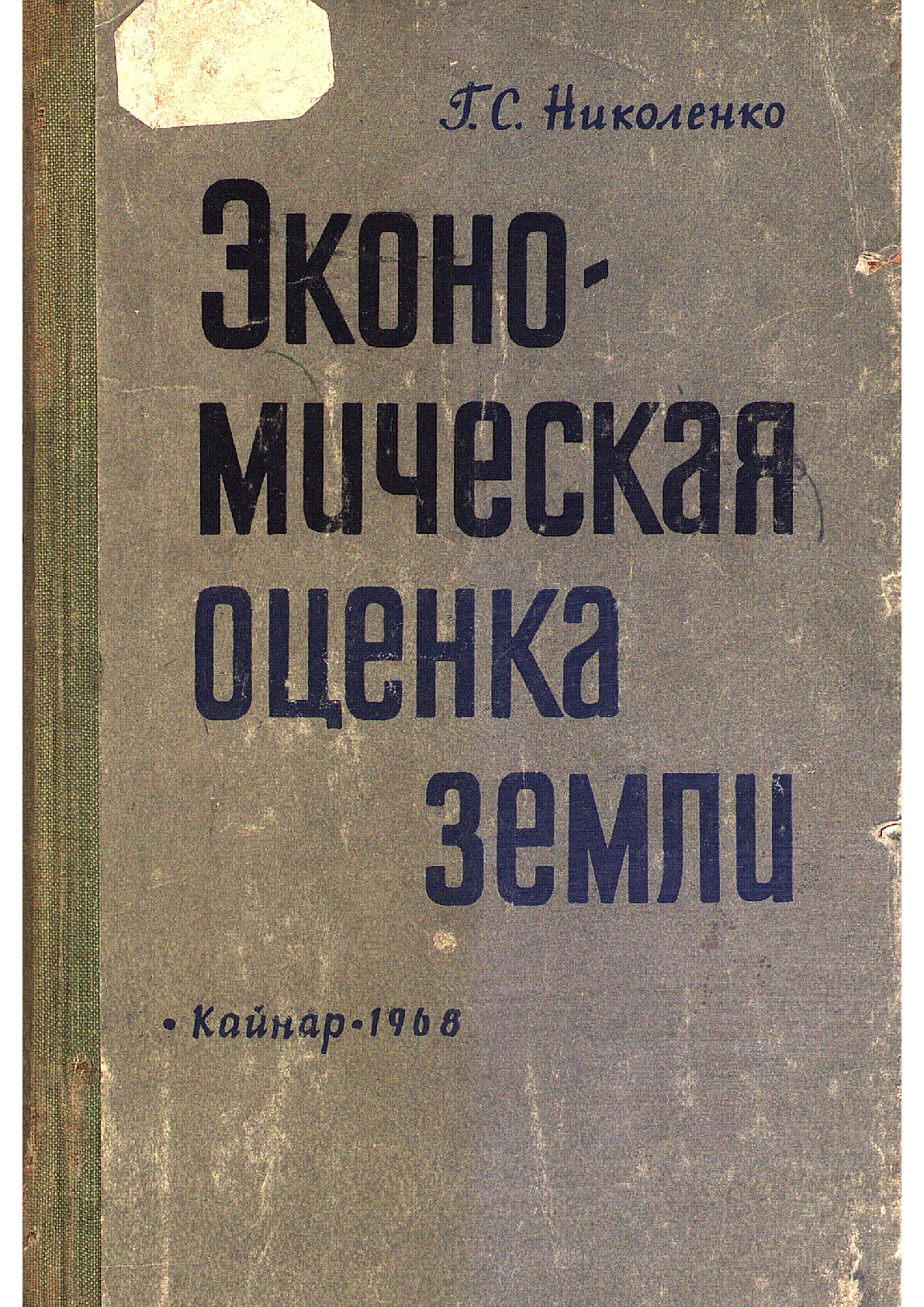 Экономическая оценка земли [Текст] / Г. С. Николенко ... – Алма-Ата : Кайнар, 1968. - 322, [2] с., табл.; . . – 5500 экз. (в пер.) : 0 тг.