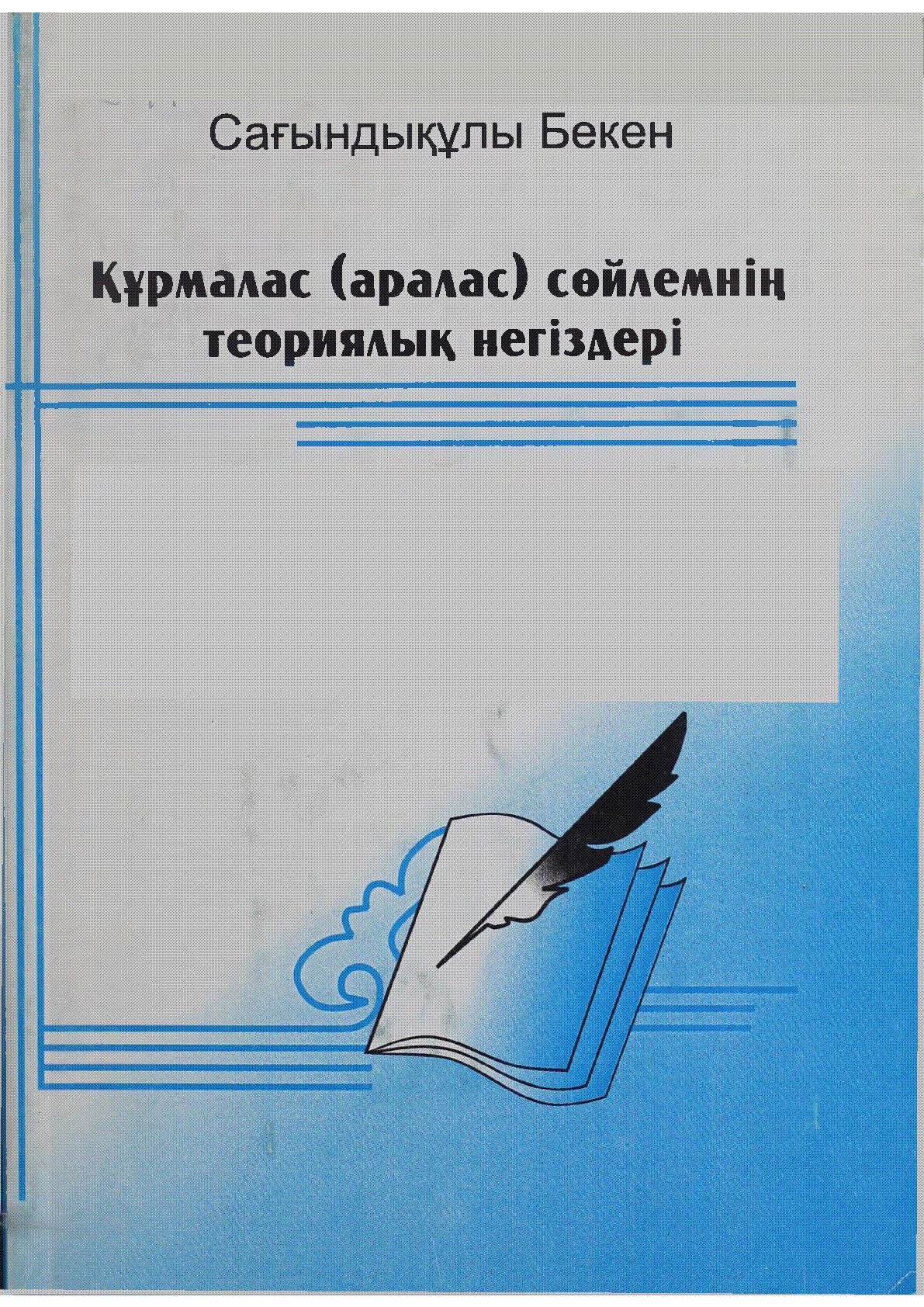Құрмалас (аралас) сөйлемнің теориялық негіздері [Мәтін] : (монография) / Б. Сағындықұлы ; ҚР Білім және ғылым министрлігі ; С. Торайғыров атын. Павлодар мем. ун-ті... – Павлодар : [ЭКО], 2002. - 198 б. . – Библиогр.: 183-194 б. . – 1000 дана – 9965-568-70-1