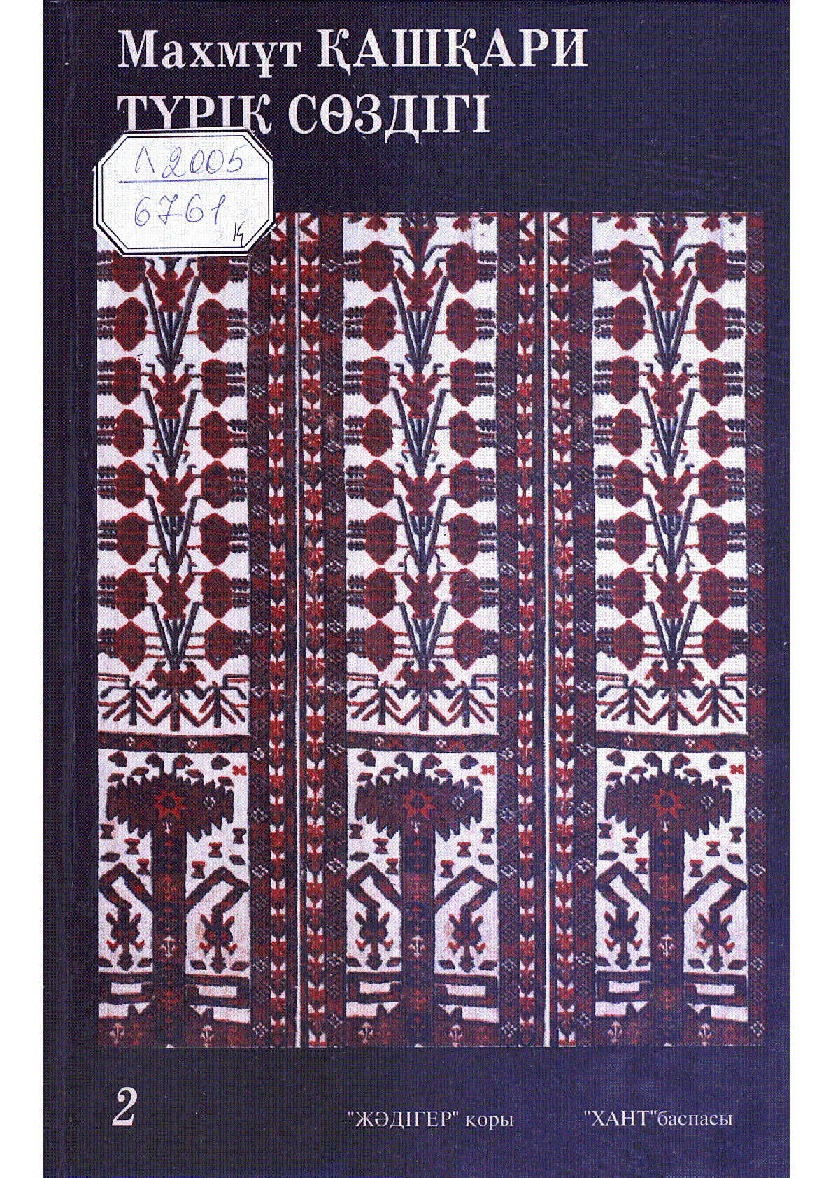 Түрік сөздігі [Мәтін] : Диуани лұғат ит-түрік : үш томдық шығармалар жинағы / М. Қашқари ; ауд., алғы сөзі мен ғылыми түсініктерін жазған: А. Қ. Егеубай .- Алматы : Хант , 1997.– 3000 дана . – ISBN 5-620-00893-2 (2-т.) (мұқ.) 2-том .– 525, [1] б. (мұқ.)