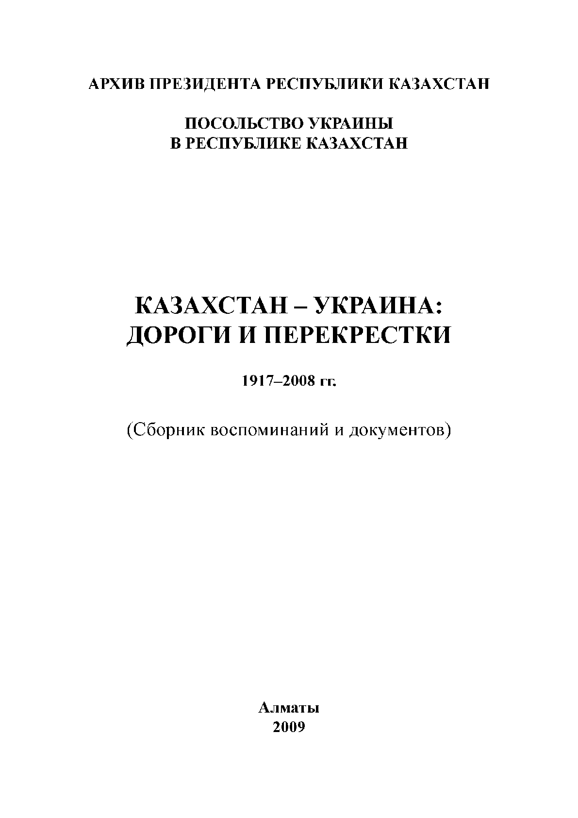 Казахстан -Украина: дороги и перекрестки : сб. воспоминаний и документов : 1917-2008 гг. / ... – Алматы : [Б. и.], 2009. - 346 с. . .