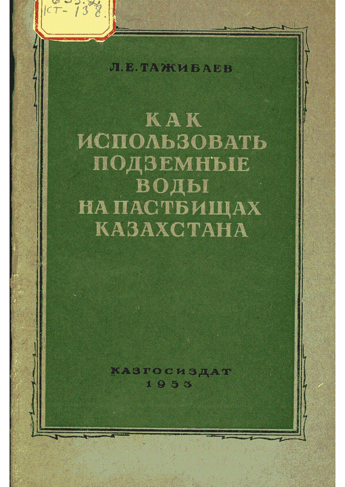 Как использовать подземные воды на пастбищах Казахстана [Текст] : (для водоснабжения) / Л. Е. Тажибаев ; под редакцией Л. Д. Архангельского... – Алма-Ата [Алматы] : Казахское государственное издательство, 1953. - 62, [2] с., ил.; . . – 10000 экз. : 10 тг.