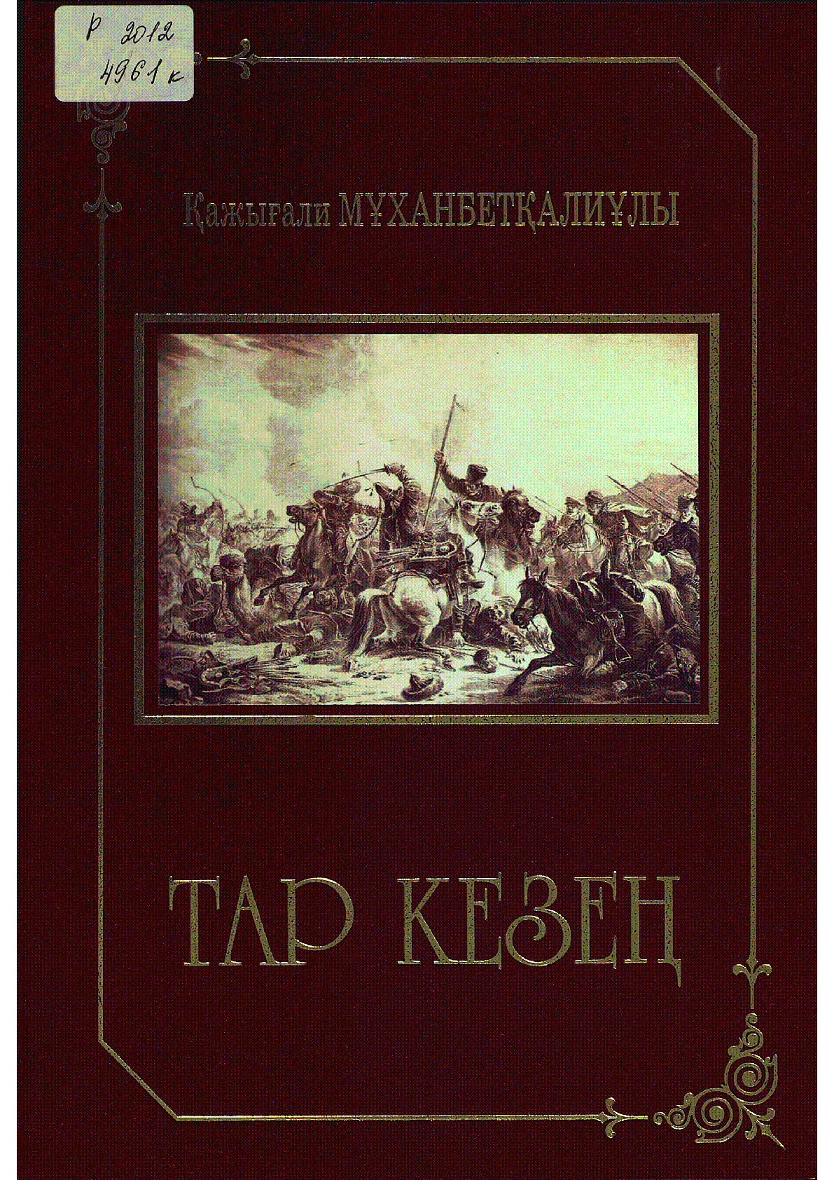 Тар кезең [Мәтін] : (тарихи роман) / Қ. Мұханбетқалиұлы ... – Алматы : Mereke, 2012. - 580, [2] б., портр., суретті; - Мырзатай Жолдасбеков қоры . . – 2000 дана – ISBN 978-601-7370-08-4 (мұқ.)