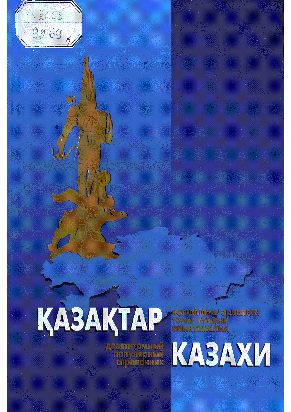 Қазақтар [Мәтін] : көпшілікке арналған тоғыз томдық анықтамалық ; құрастырғандар: Е. Әбен, А. Оразбаева, М. Спанов ; Қазақстан даму институты .- Алматы : IDK-TIPO , 1998.– 3000 дана . – ISBN 5-7667-2052-1 (6-т.), ISBN 5-7667-2070-Х (мұқ.) - Мәтін қазақ және орыс тілдерінде қатар . 6-том. . "Қазақ" сөзінің шығу төркіні туралы– 405 б. (мұқ.)