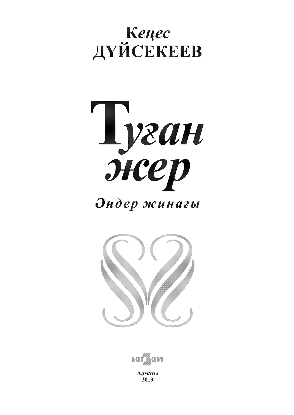 Туған жер : әндер жинағы / Дүйсекеев, Кеңес ... – Алматы : Sansam, 2013. - 216 б., нота.; - ҚР Мәдениет және ақпарат министрлігі, Ақпарат және мұрағат комитеті "Әдебиеттің әлеуметтік маңызды түрлерін басып шығару" бағдарламасы бойынша шығарылды . . – 2200 дана – 979-0-9016300-2-4 (мұқ.) : 2008 тг.