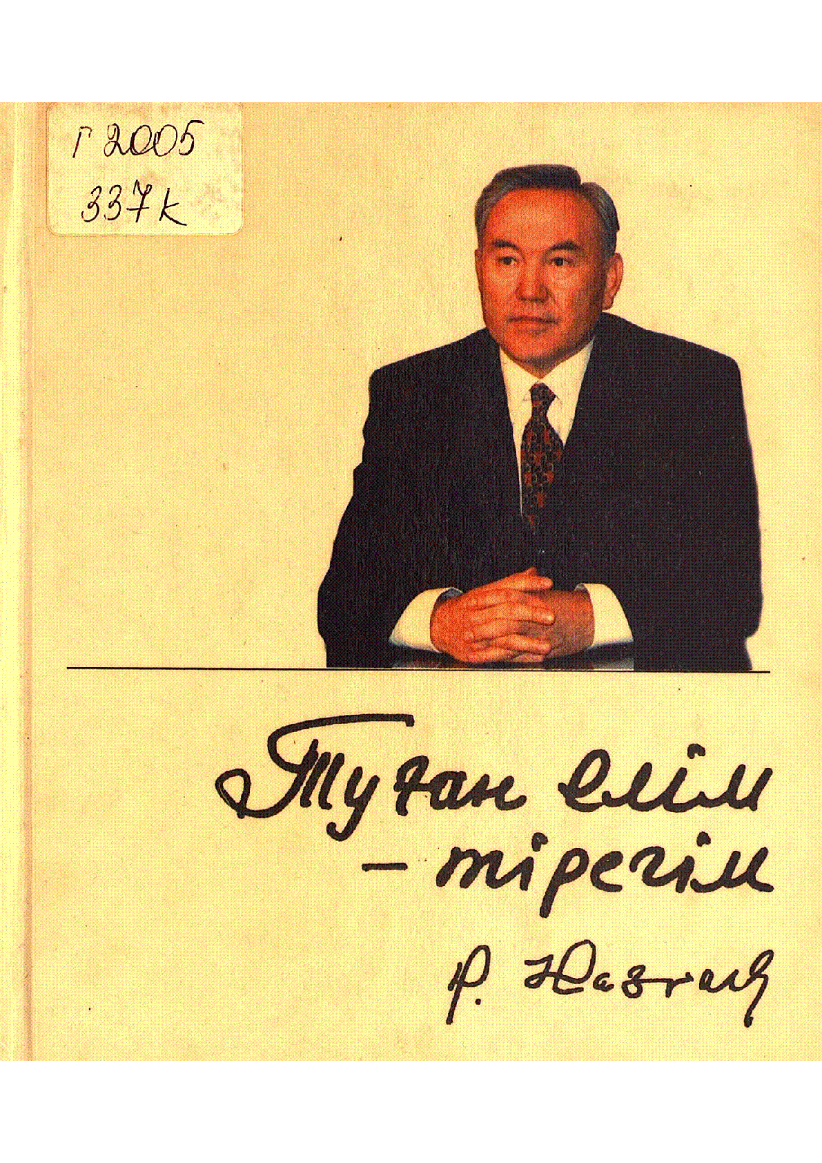 Туған елім - тірегім [Мәтін] / Н. Назарбаев ... – Алматы : Рауан, 2001. - 128 б. . . – [т. ж.] – ISBN 5-7667-8110-5 (мұқ.) : 170 тг.