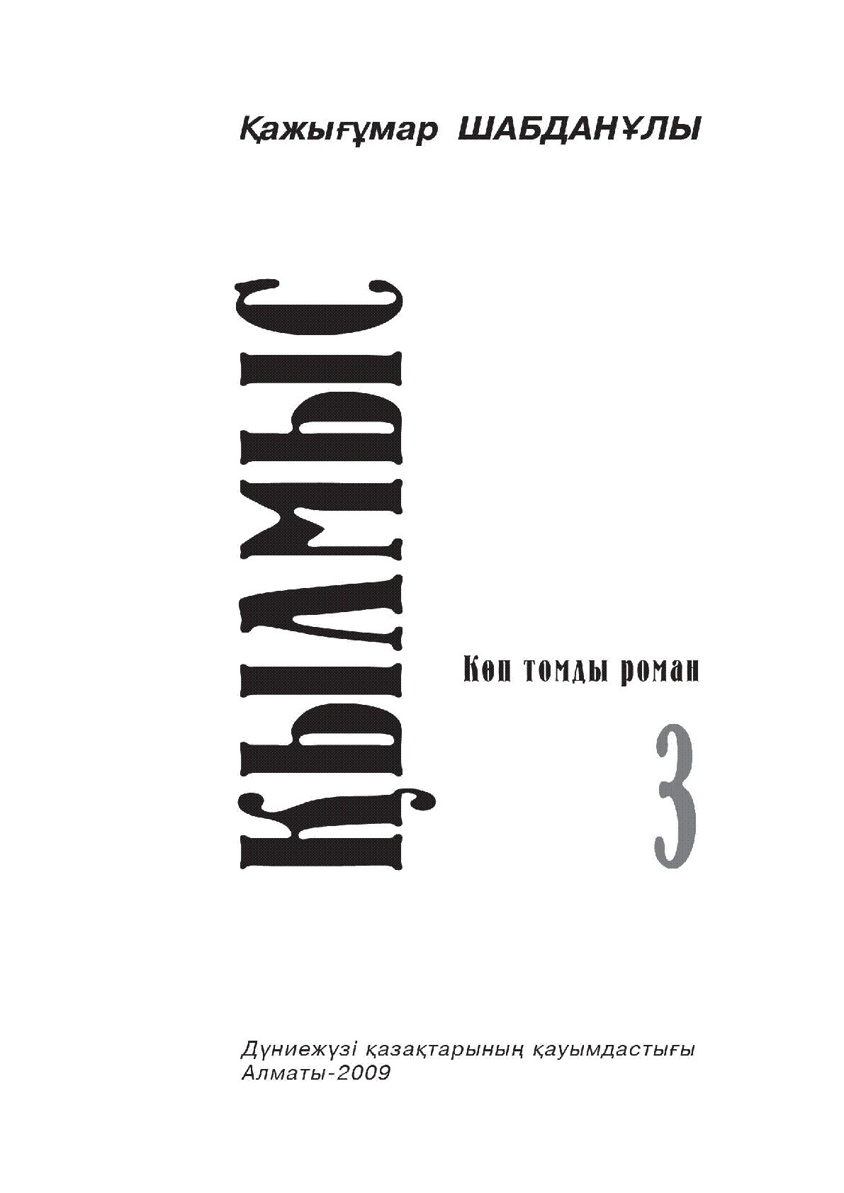 Қылмыс : көп томды роман Шабданұлы, Қажығұмар ; Дүниежүзі қазақтарының қауымдастығы ; жауапты ред. Ж. Шәкен; төте жазудан кириллицаға түсірткен, жалпы ред.қараған Қ.Жұмаділов .- Алматы : Атажұрт , 2009. – Шетелдегі қазақтар. : Қауымдастық кітапханасы) .– 2000 дана . – 978-601-7023-15-7-(Т.3)(мұқ.), 978-601-7023-12-6 3 том .– 375 б., портр. . : 500 тг.