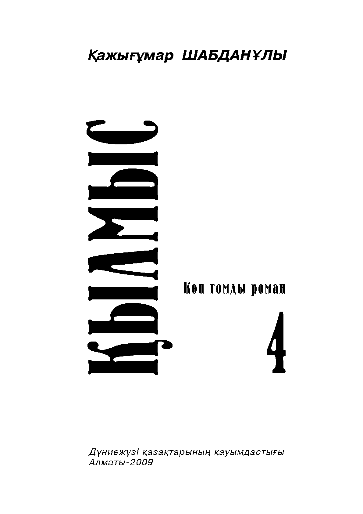 Қылмыс : көп томды роман Шабданұлы, Қажығұмар ; Дүниежүзі қазақтарының қауымдастығы ; жауапты ред. Ж. Шәкен; төте жазудан кириллицаға түсірткен, жалпы ред.қараған Қ.Жұмаділов .- Алматы : Атажұрт , 2009. – Шетелдегі қазақтар. : Қауымдастық кітапханасы) .– 2000 дана . – 978-601-7023-16-4-(Т.4)(мұқ.), 978-601-7023-12-6 4 том .– 413 б., портр. . : 500 тг.