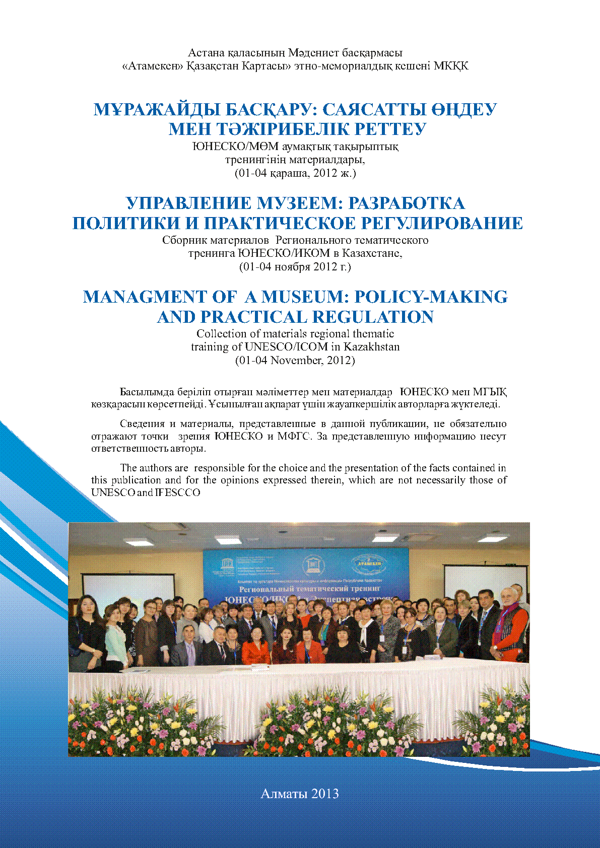 Кітапта мұражай қызметін ғылыми жобалаудың өзекті мәселелері, заманауи мұражайдың стратегиялық, басқару жобасы, мұражайдың оқу орындарымен өзара тәжірибе алмасуы, материалдың және рухани мәдениетті сақтаудағы мұражай рөлі: мәселелері мен келешегі, инновациялық технологияларды енгізу, т.б. мәселелері талқыланған