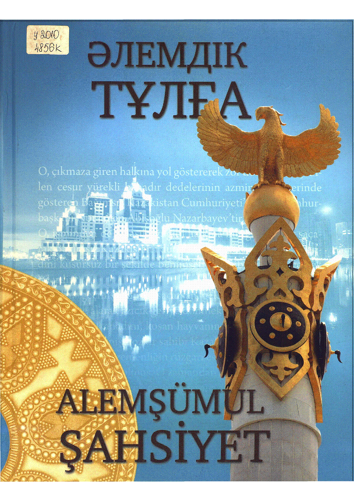 Әлемдік тұлға [Text] / ... – Астана : Деловой мир Астана, 2010. - 227 б., фотосурет. альбом;– (Жаңа Қазақстан. - Мәтін қазақ және түрік тілдерінде . . – 2 000 дана – 978-601-7259-00-6 (мұқ.) : 1 500 тг.