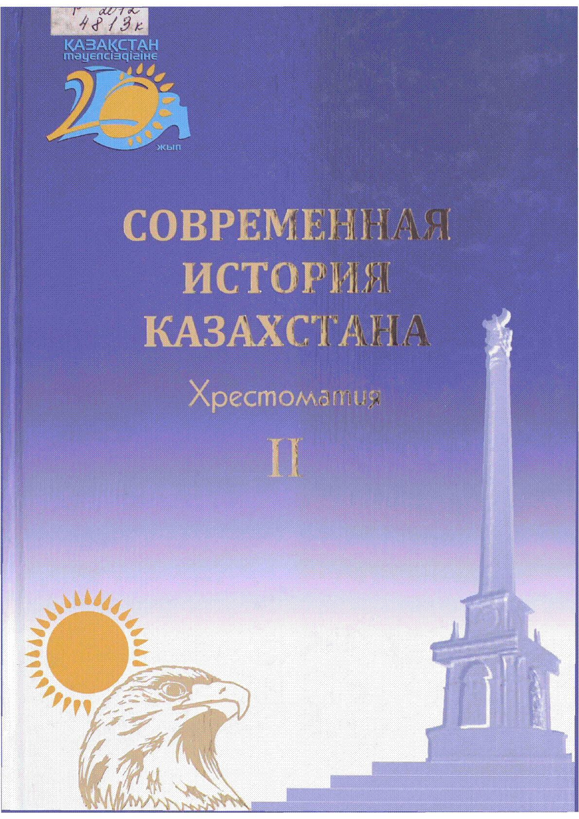 Современная история Казахстана (2010-2011 гг.) [Текст] : Хрестоматия : Летопись Независимости ; [сост. : Б. Г. Аяган, А. М. Ауанасова, А. М. Сулейменов ; под ред. Б. Г. Аягана]; Институт истории государства Министерства образования и науки Республики Казахстан .- Алматы : Раритет , 2011.– 2000 экз. . – 978-601-250-118-6 (в пер.) - К 20-летию Независимости Республики Казахстан посвящается; Қуаныш Сұлтанов қоры . Т. 2 .– 478 с. (в пер.) : 450 тг.