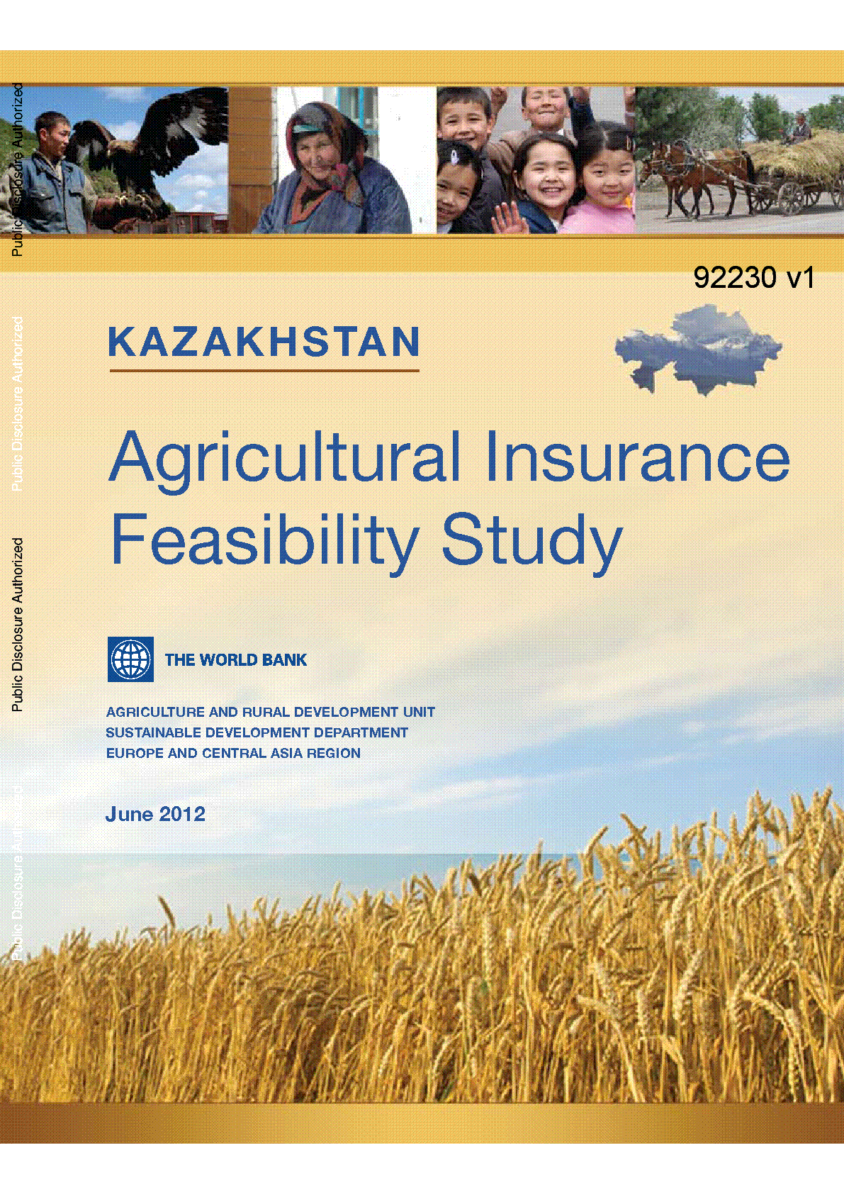 Kazakhstan. Agricultural Insurance Feasibility Study [Text] : Agriculture and Rural Development Unit Sustainable Development Department Europe and Central Asia Region / ; The World Bank... – Washington : The World Bank, 2012. - 211 p., tables, figures; . – Bibliogr. : 209-211 p. . – [n. c.]