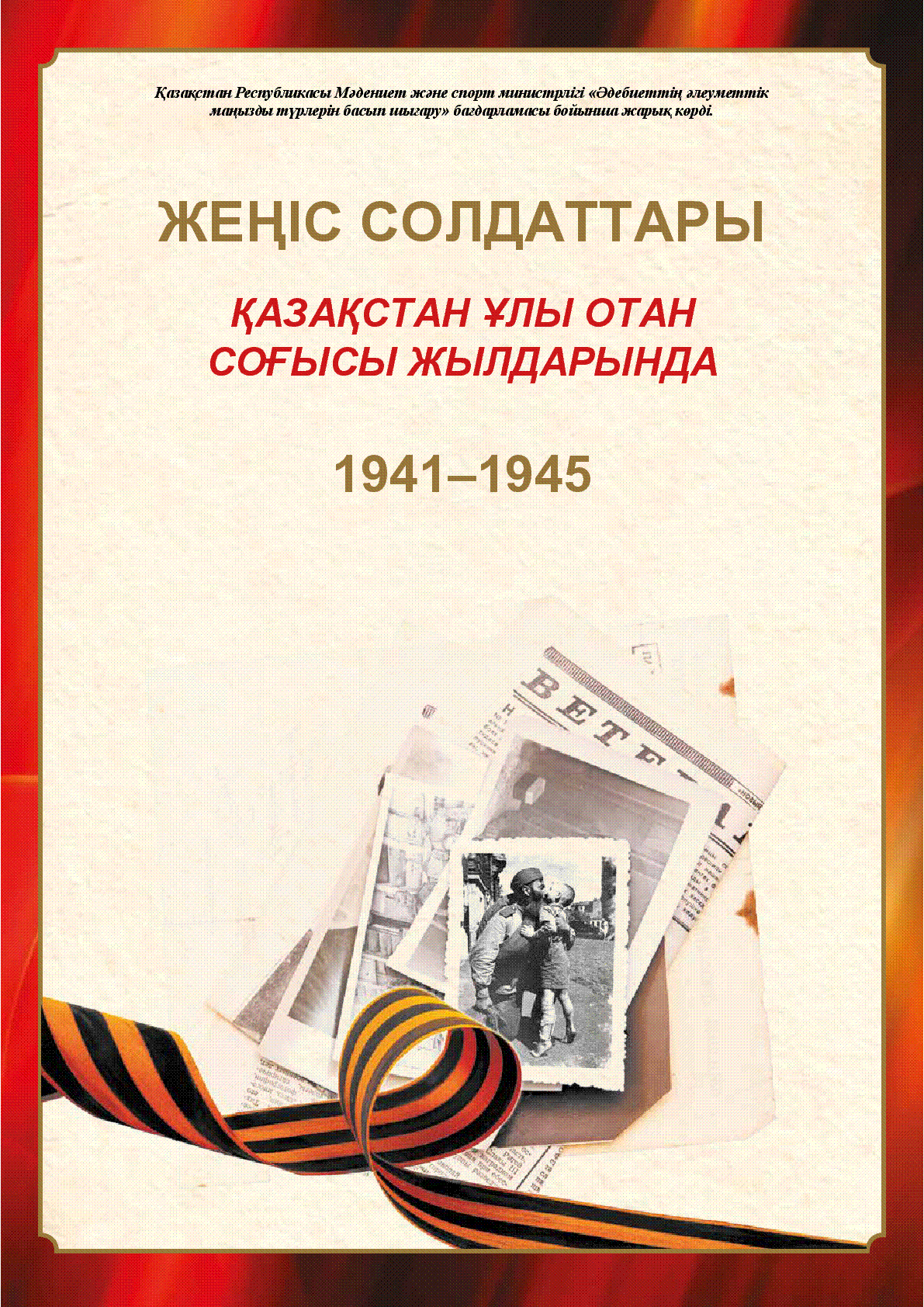 Жеңіс сарбаздары. Қазақстан Ұлы Отан соғысы жылдарында 1941-1945 [Мәтін] / ; ҚР Мәдениет және спорт мин-гі... – [Б. о. ж.] : [б. ж.], 2015. - 181 б., суретті; - Қазақстан Республикасы Мәдениет және спорт министрлігі "Әдеби әлеуметтік маңызды түрлерін басып шығару" бағдарламасы бойынша жарық көрді . . – 2000 дана – 978-601-7059-29-3 (мұқ.) : 2507, 5 тг.