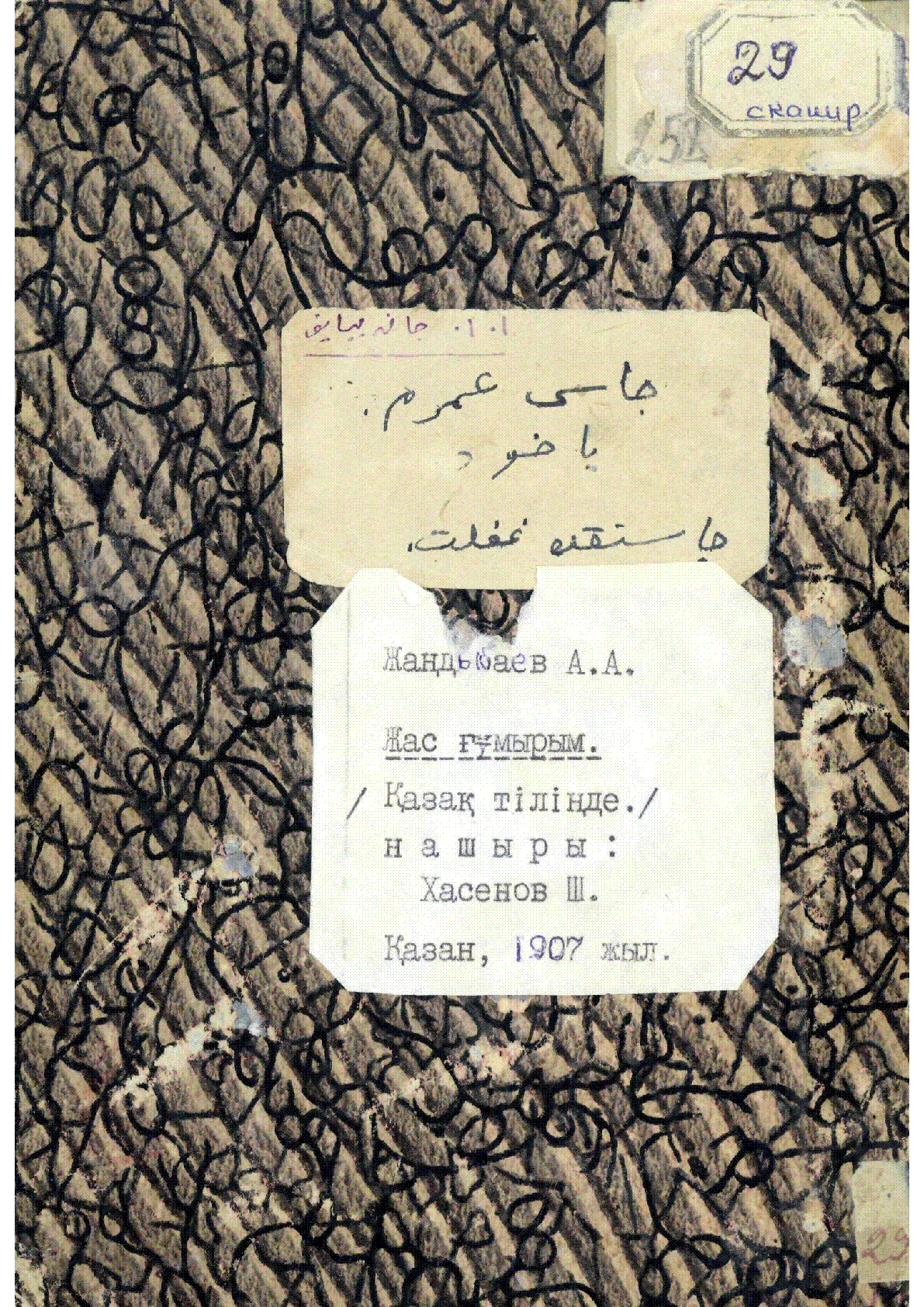 "Жас ғұмырым" яки жастарға ғафлет [Мәтін] / Жандыбаев ... – Қазан : "Шәрәф" матбәғасы, 1907. - 24 б. - Мәтін араб графикасымен жазылған . .