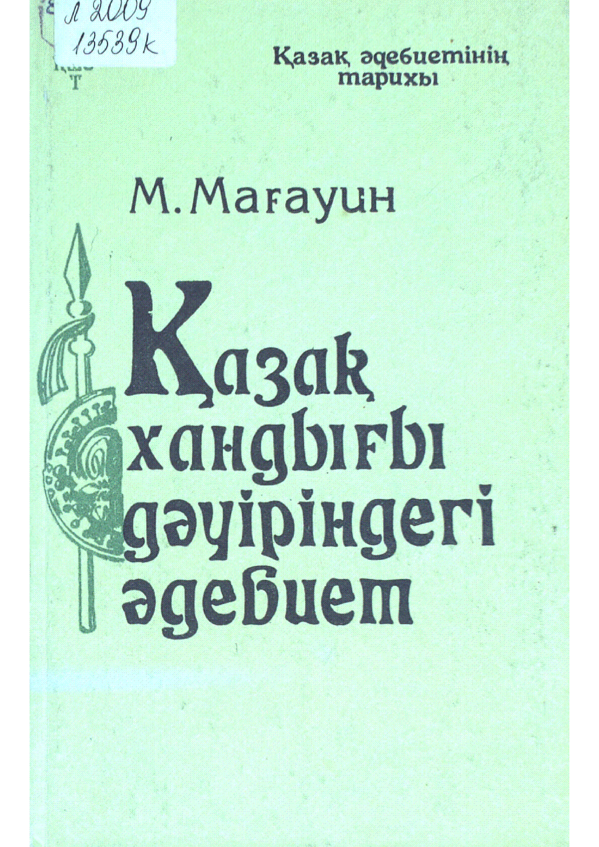 Қазақ хандығы дәуіріндегі әдебиет [Мәтін] : (XV-XVIII ғасырлар) / М. Мағауин- Алматы : Ана тiлi , 1992. – Қазақ әдебиетінің тарихы.– 8500 дана . – ISBN 5-630-00094-2 (мұқ.) 3-кітап .– 173, [2] б. (мұқ.) : 40 тг.