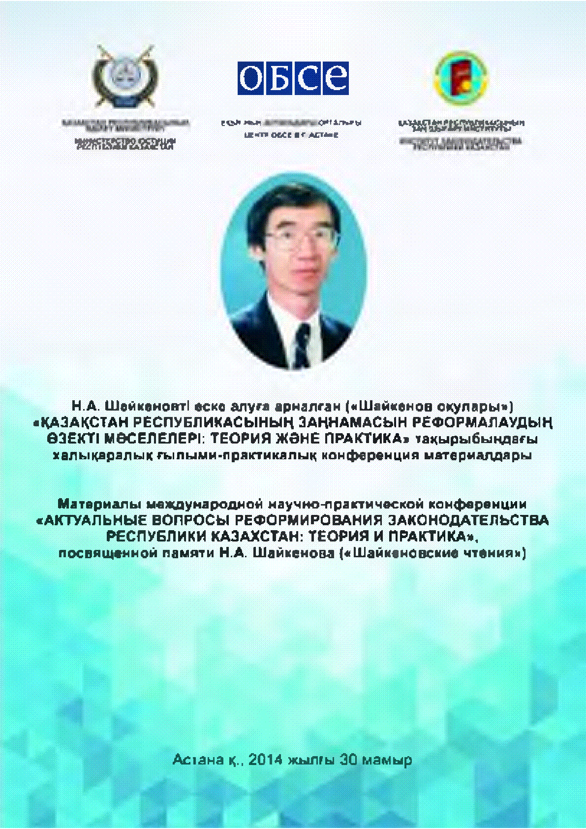 Актуальные вопросы реформирования законодательства Республики Казахстан: теория и практика = Н. А. Шәйкеновті еске алуға арналған («Шәйкенов оқулары») «Қазақстан Республикасының заңнамасын реформалаудың өзекті мәселелері: теория және практика» [Текст] : материалы международной научно-практической конференции : посвященной памяти Н. А. Шайкенова ("Шайкеновские чтения") / ; Министерство юстиции Республики Казахстан ; Институт законодательства Республики Казахстан ; [редакционная коллегия: З. Х. Баймолдина [и др.]]... – Астана : [б. и.], 2014. - 202 с. . – Библиогр. в конце ст. . – 100 экз. – ISBN 9965-600-25-2 : 40 тг.