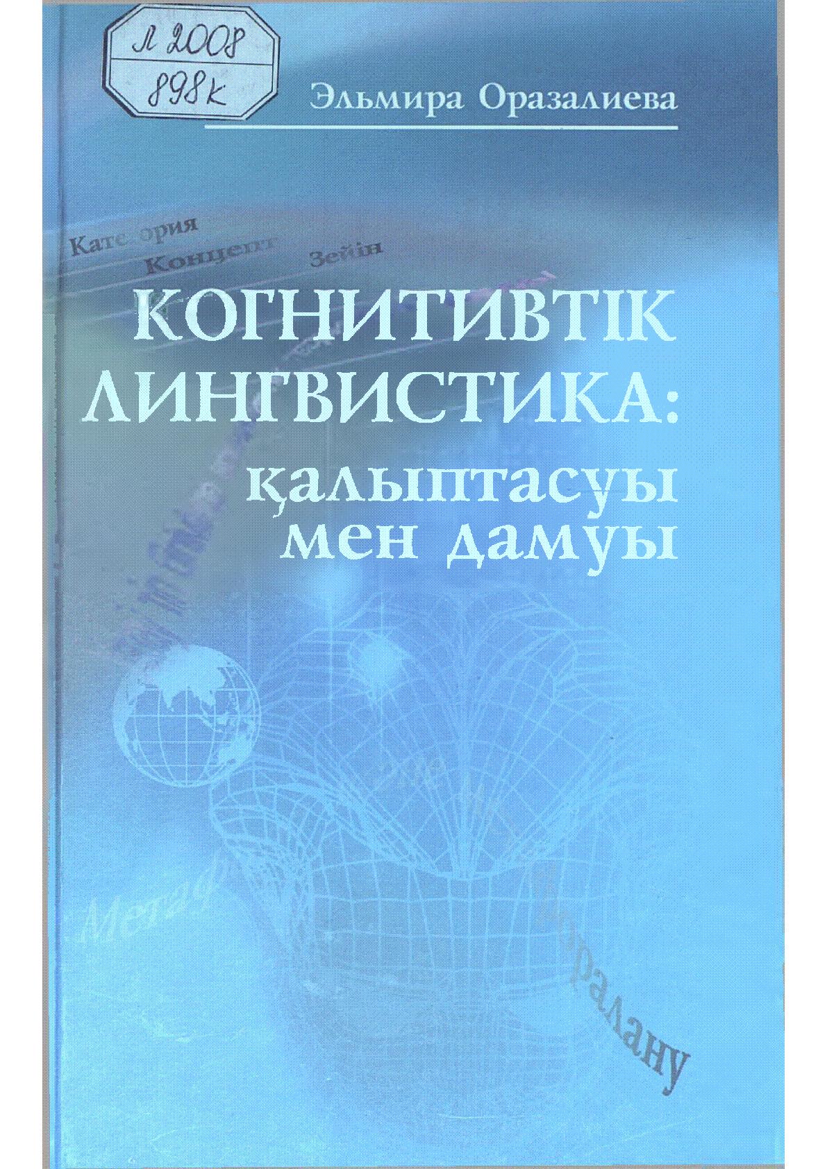 Когнитивтік лингвистика: қалыптасуы мен дамуы [Мәтін] : ғылыми монография / Э. Н. Оразалиева ; А. Байтұрсынұлы атындағы Тіл білімі институты ; редакторы Н. Ж. Шаймерденова ; пікір жазғандар: М. С.Серғалиев, Ж. Манкеева, И. С. Карабулатова... – Алматы : Ан Арыс, 2007. - 311, [1] б. . – Библиография: 299-310 б. . – 1000 дана – ISBN 0000-00-000-0 (мұқ.) : 150 тг.