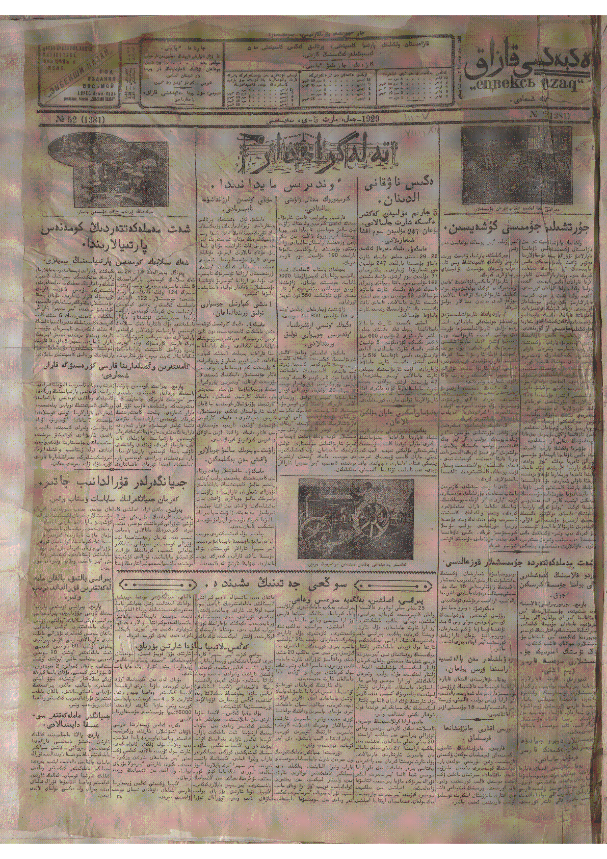 Еңбекші қазақ. 1929 ж. : 5-март, 1929 ж.. – Қызыл-Орда : Казгосиздат, 1929. - .– 14 500 дана.– күнде шығады. № 52(1381). - 14 500 дана