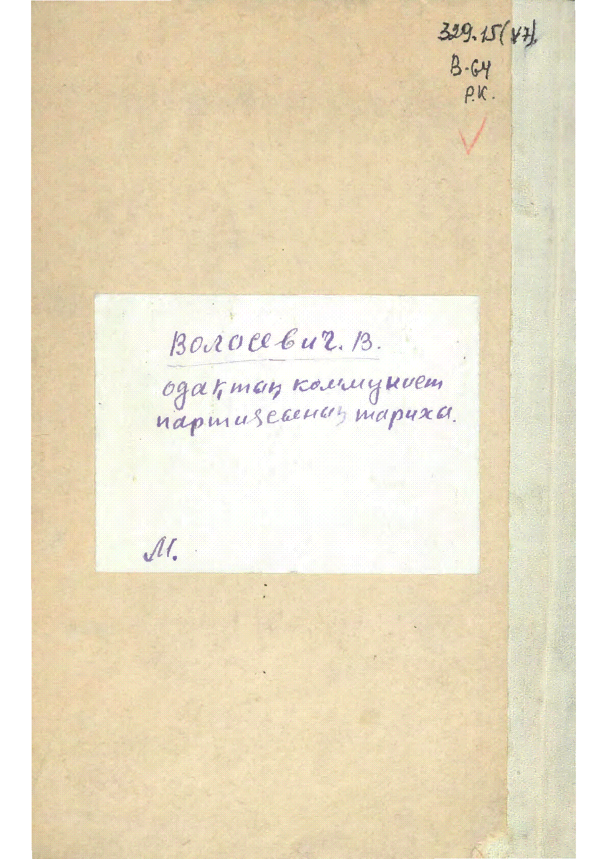 Одақтық коммунист партиясының қысқаша тарихы [Мәтін] / В. Волосевич ; Ауд. Жұмабайұлы... – М. : Кеңес одағындағы елдердің кіндік баспасы, 1927. - 263 б. - Мәтін араб графикасымен жазылған . . – 4000 дана