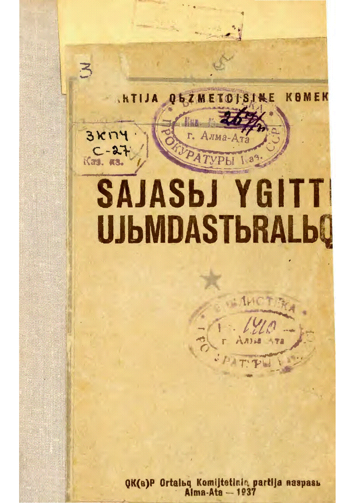 Саяси үгітті ұйымдастыралық [Text] : материал жинақтары / ; жауапты ред. Б. Айбасов... – Алма-Ата : Қазақстан партия баспасы, 1937. - 70 бет - Латын графикасымен. . . – 5150 дана